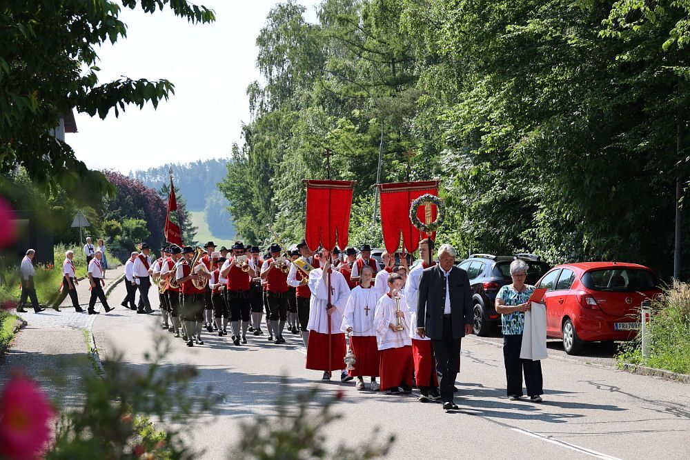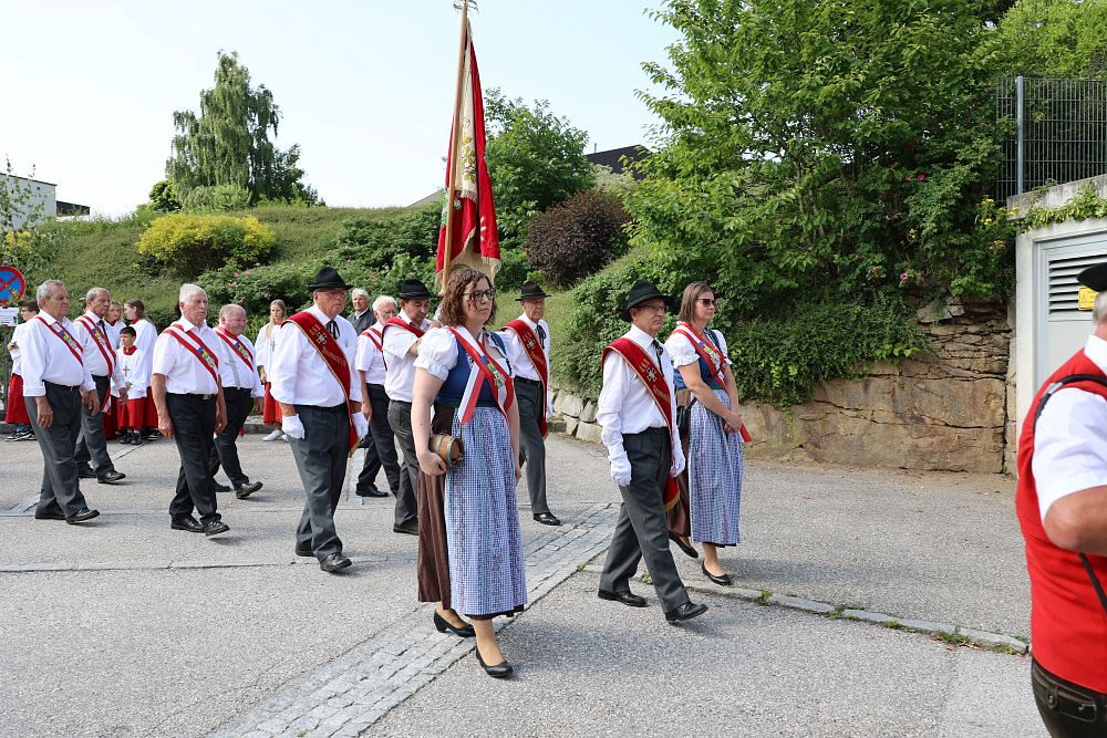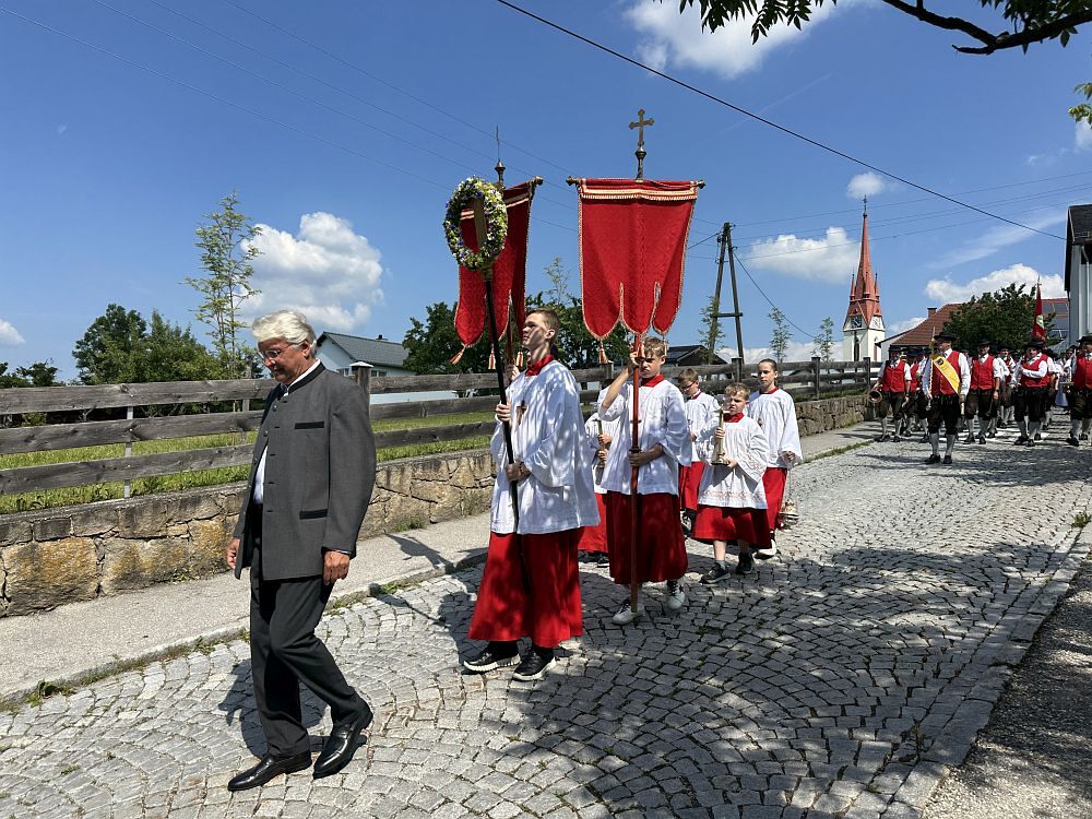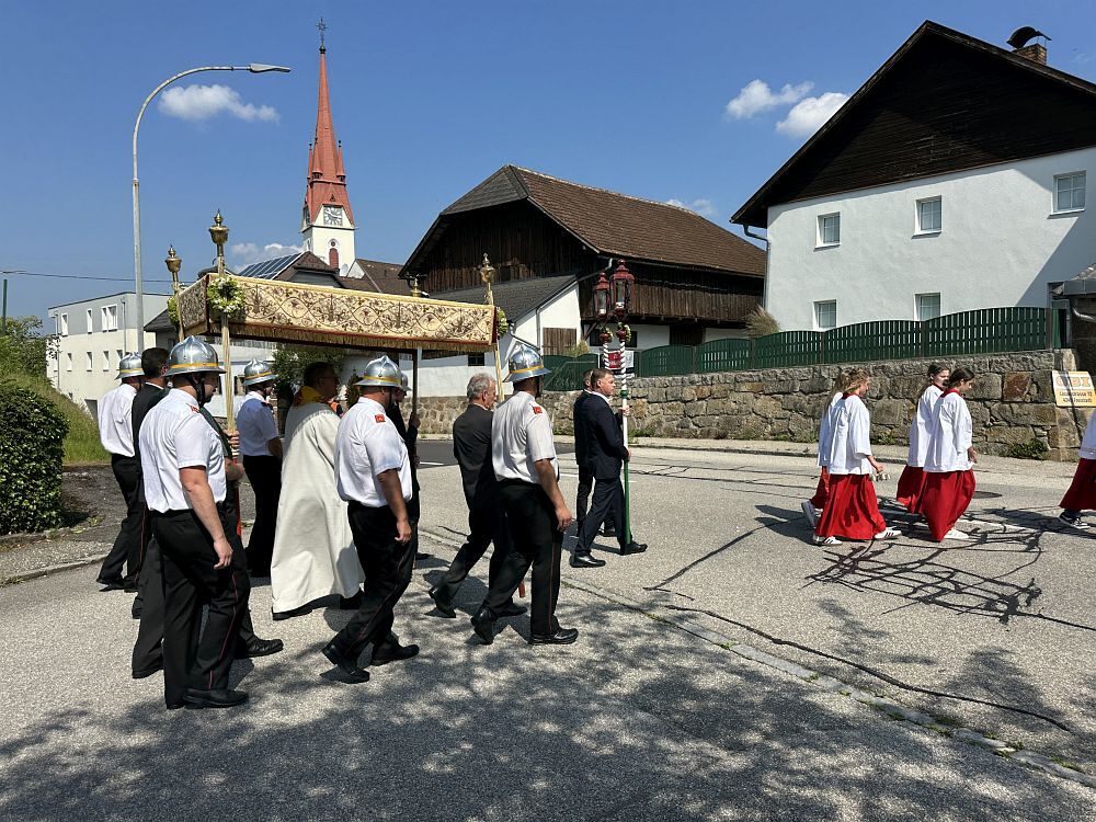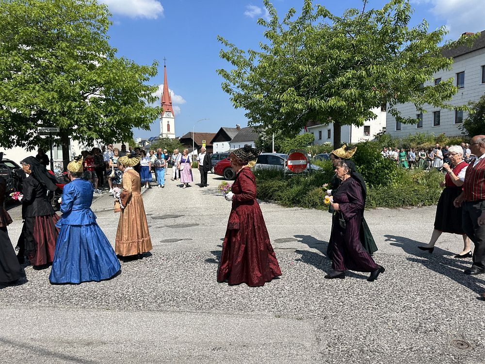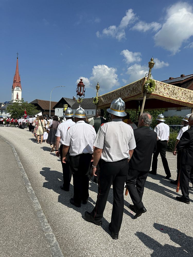 Begleitet wurden wir von der Musikkapelle, den Goldhaubenfrauen, dem Kamaradschaftsbundsowie und vielen mehr. Die Freiwillige Feuerwehr versorgte uns unterwegs mit erfrischendem Wasser.
