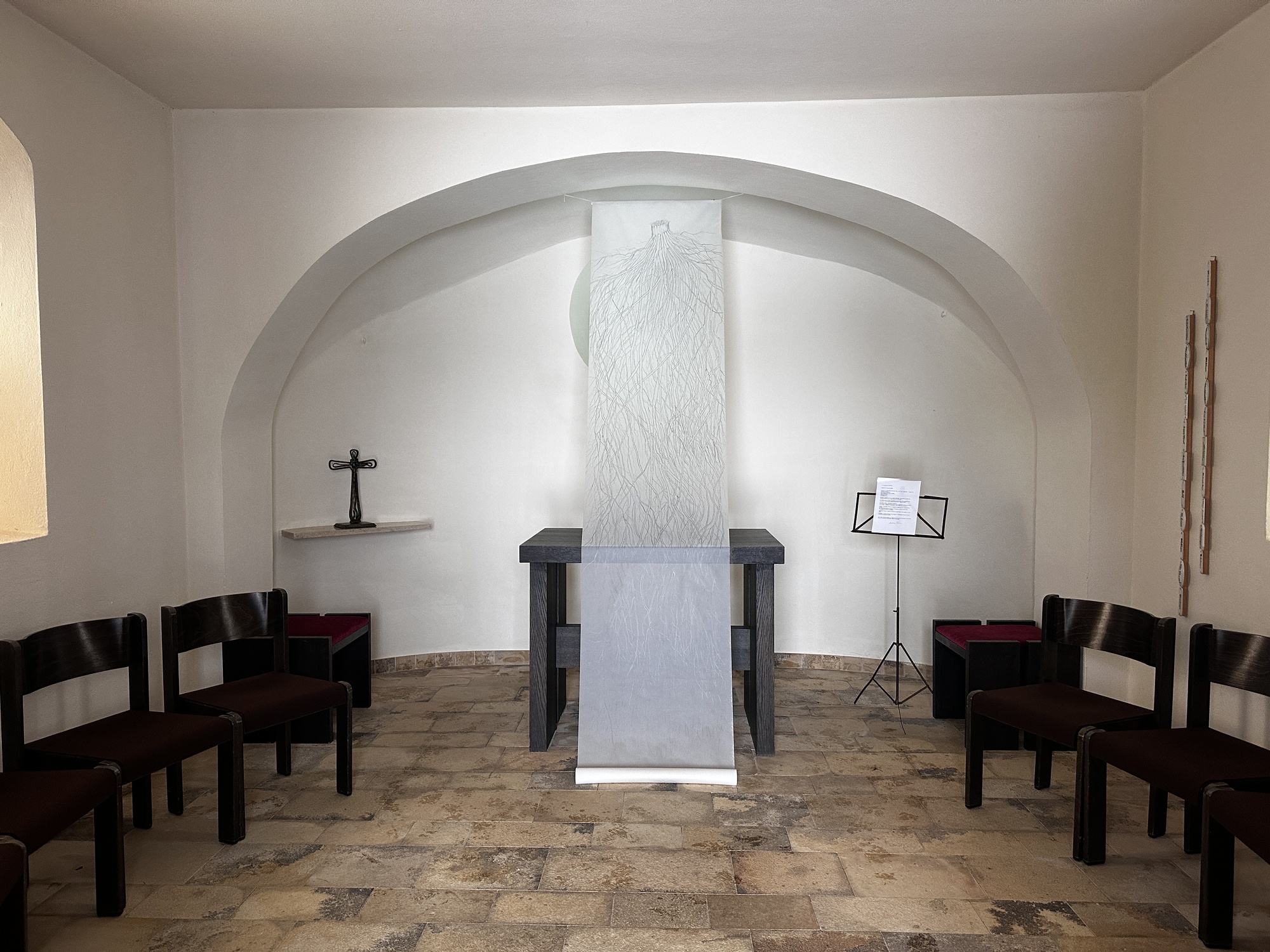 Das von Christine Böhm gestaltete Fastentuch gab der Andacht eine eindrucksvolle und besinnliche Atmosphäre.