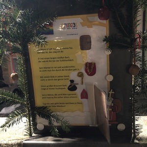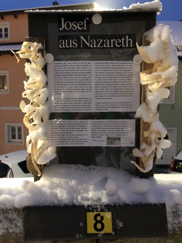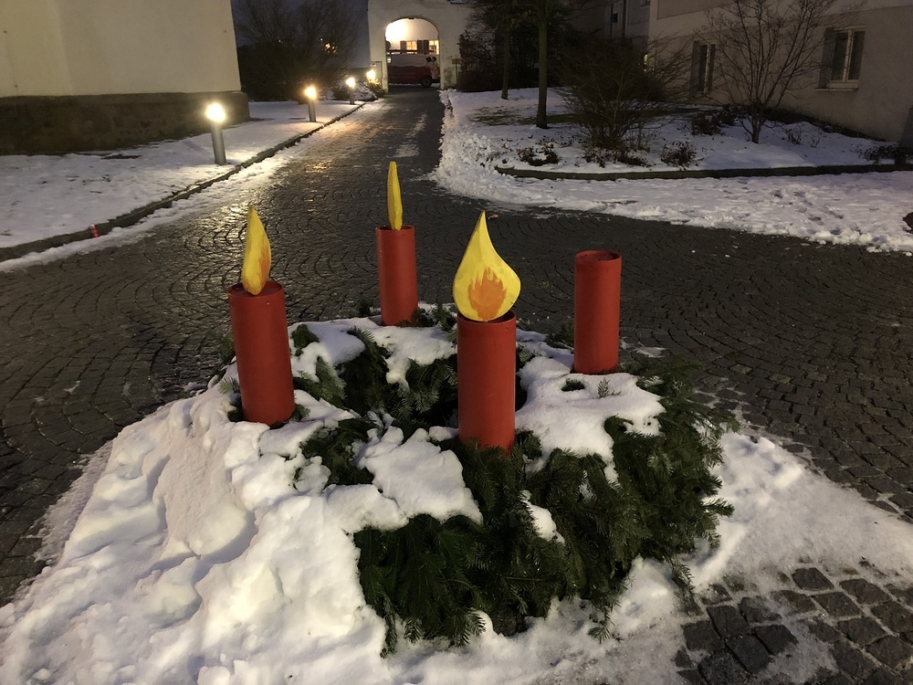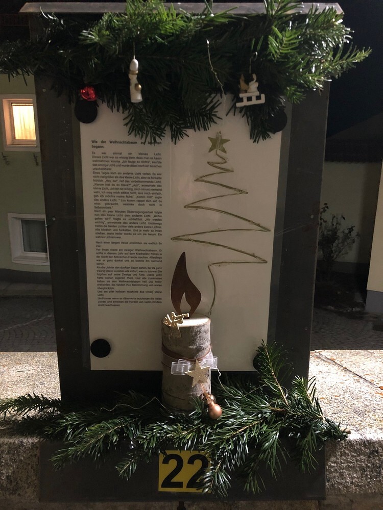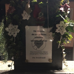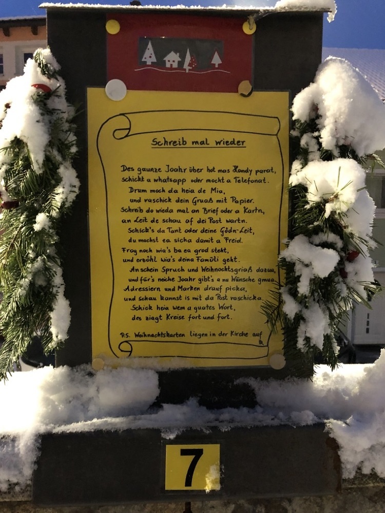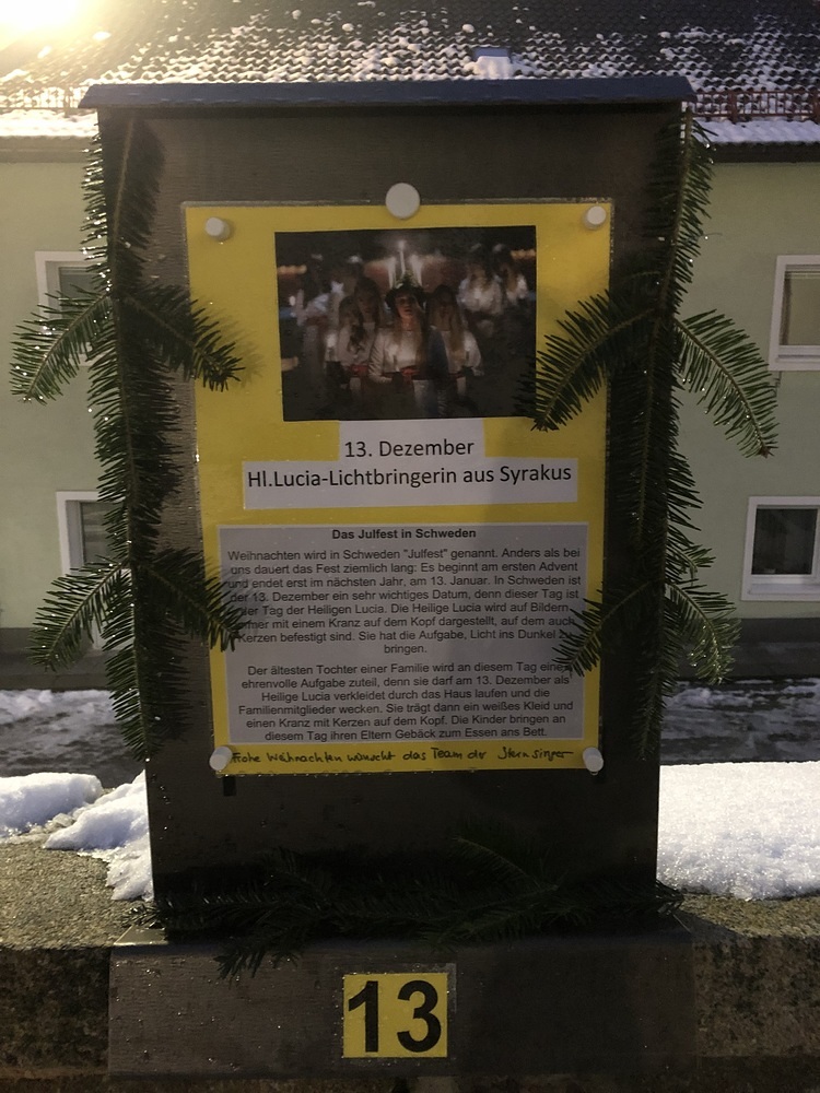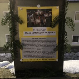 Entlang der Kirchenmauer ist wieder unser Adventkalender. Jeden Tag wird eine Tafel gestaltet.
