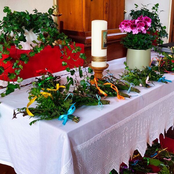 Die Palmbuschen liegen in der Kirche auf und können dort