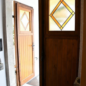 Der Eingangsbereich ist jetzt barrierefrei und durch die Glastüren und Fenster sehr offen und einladend, hell und lichtdurchflutet und gibt den Blick frei auf die wunderschön renovierten alten Kirchentüren, die dem Ganzen noch eine besondere Note geben.