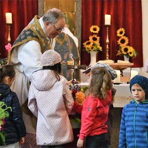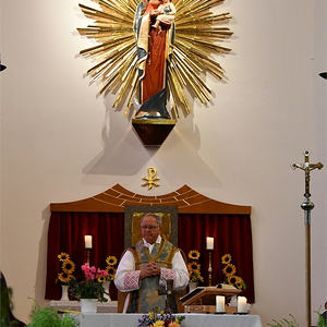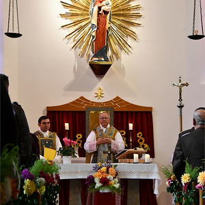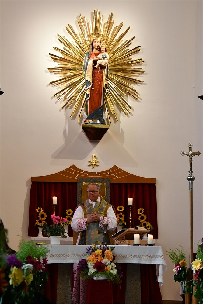 Am 7. Okt. wurde auch das Patrozinium - Rosenkranzkönigin - und 70 Jahre Grundsteinlegung unserer Kirche gefeiert. Aus diesem Anlaß wurde die Marienstatue mit einem neuen Strahlenkranz gesegnet.