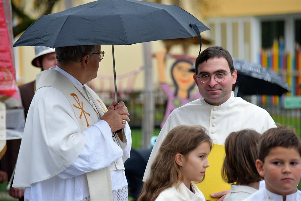 Es ist auch eine Freude das der Abt des Stiftes Schlägl, Prälat Kons.-Rat. KR. Mag. Martin Felhofer, zu diesem Fest gekommen ist und die Segnung des neuen Kirchenportals und die Marienstatue mit Strahlenkranz gemeinsam mit Herrn Pfarrer Mag. Maximilian Pühringer vorgenommen hat.