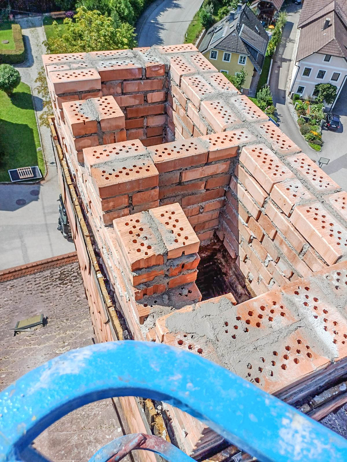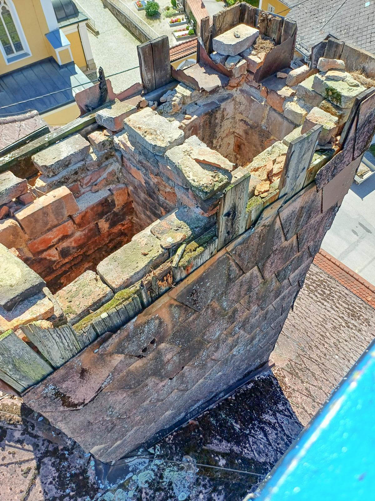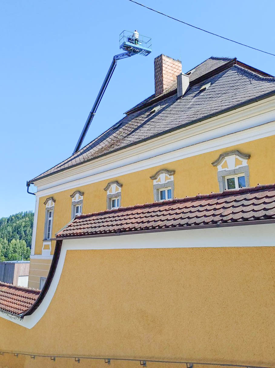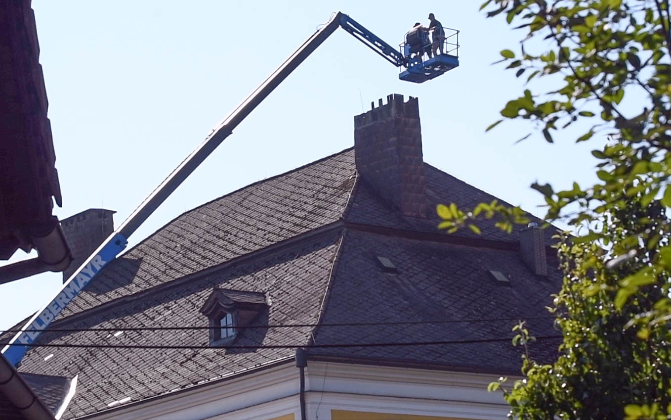 Stallinger Andreas und Sohn Martin, haben in den vergangenen Augusttagen einen mühevollen Arbeitsauftrag erfüllt. In luftiger Höhe, mit Hilfe einer überdimensionalen Arbeitsbühne, sanierten die Beiden einen der Kamine des Pfarrhofes. Die Bilder zeigen einige Eindrücke dieser Arbeit. Herzlichen Dank den Beiden!