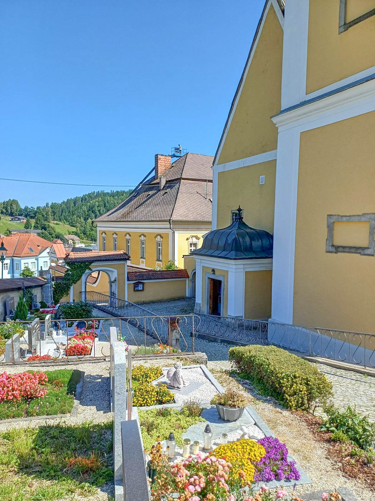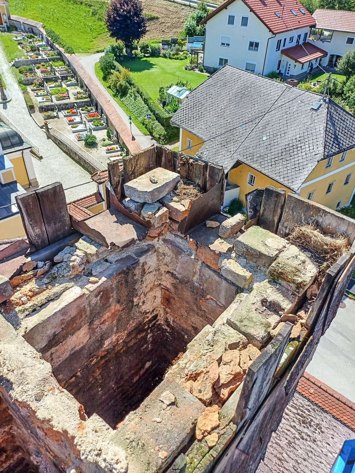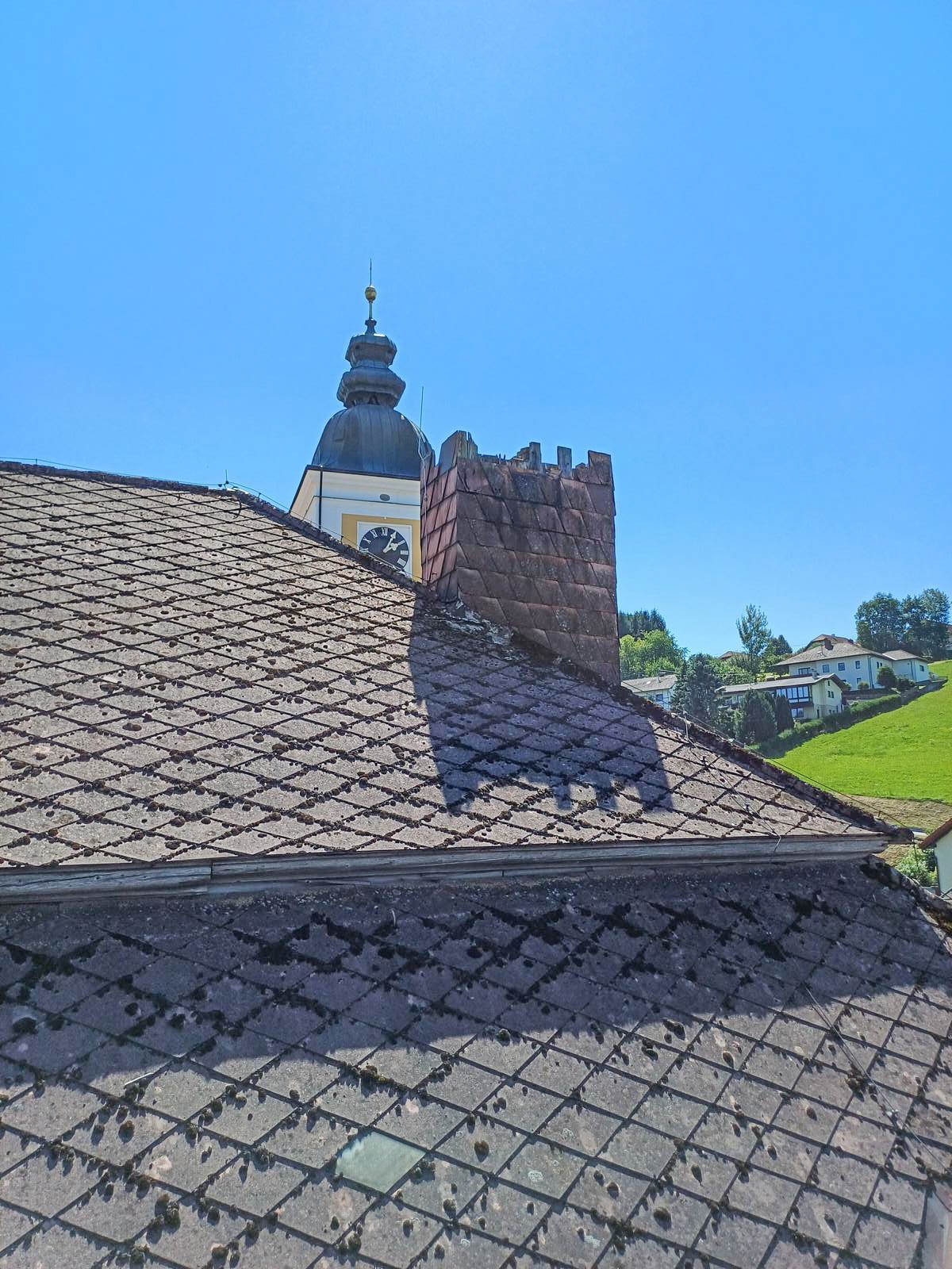 Stallinger Andreas und Sohn Martin, haben in den vergangenen Augusttagen einen mühevollen Arbeitsauftrag erfüllt. In luftiger Höhe, mit Hilfe einer überdimensionalen Arbeitsbühne, sanierten die Beiden einen der Kamine des Pfarrhofes. Die Bilder zeigen einige Eindrücke dieser Arbeit. Herzlichen Dank den Beiden!