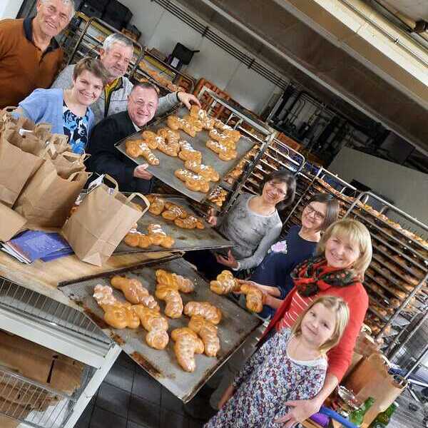 Das kbw-Team organisierte zum 1. Advent-Sonntag auch heuer wieder die Aktion "Nußbacher Tannenzapfen". Mit Hilfe von Simon Wöckl und vielen HelferInnen gelang es die über 500 Tannenzapfen die bestellt wurden in der Bachstube der Kremstalbäckerei zu formen und zu backen. Pater Gabriel gab den Tannenzapfen noch den Segen mit auf dem Weg.