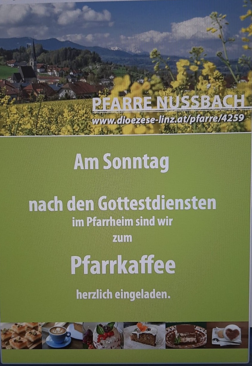 Die Bäuerinnen und die Pfarre laden alle herzlich ein - jeweils nach den Gottesdiensten - zum Pfarrkaffee im Pfarrheim.