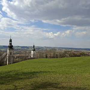 - Vom Stiftshof durch den Klostergarten wurden wir von Abt P. Nikolaus geleitet zum Kreuzweg auf den Kalvarienberg.