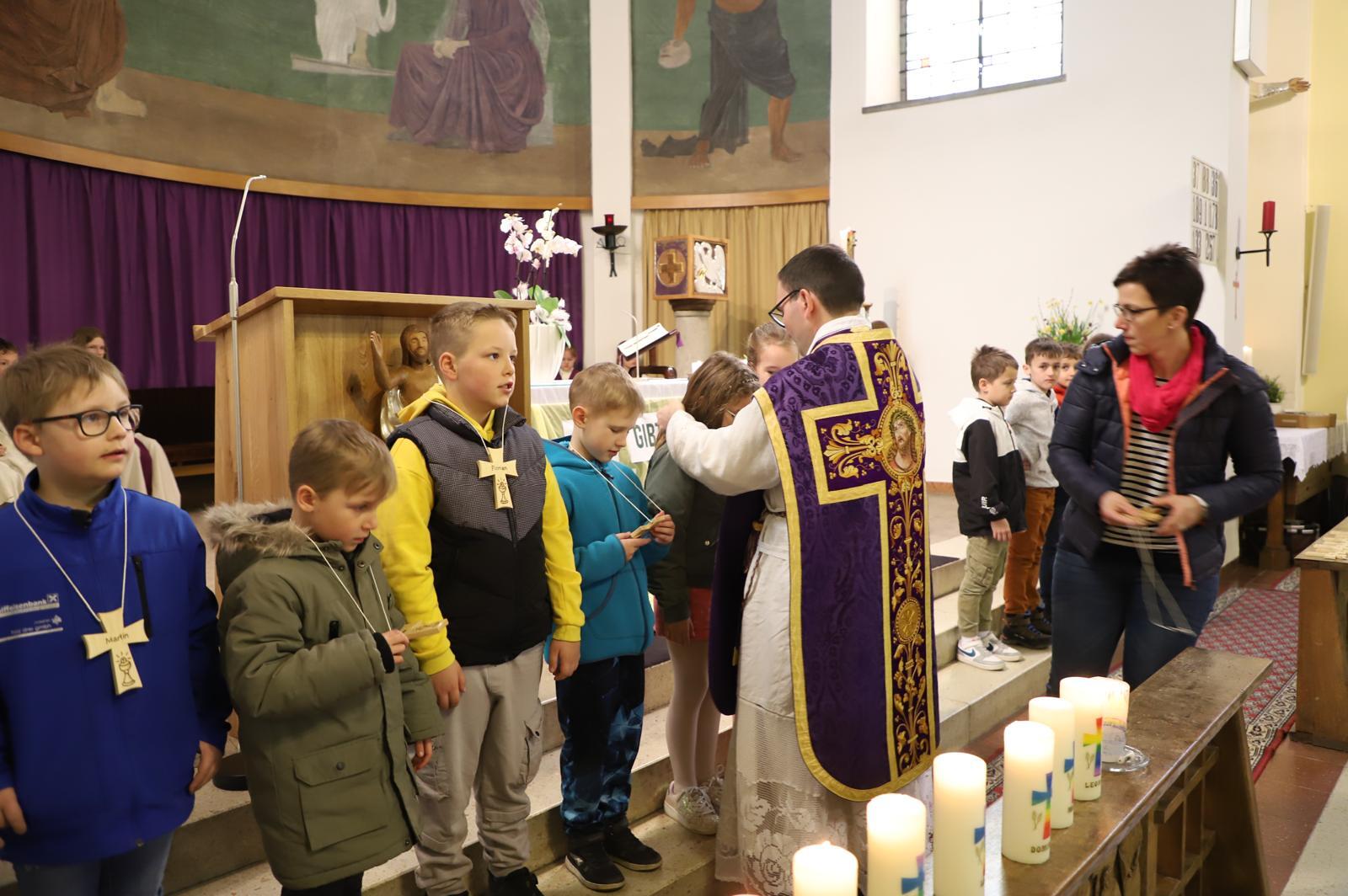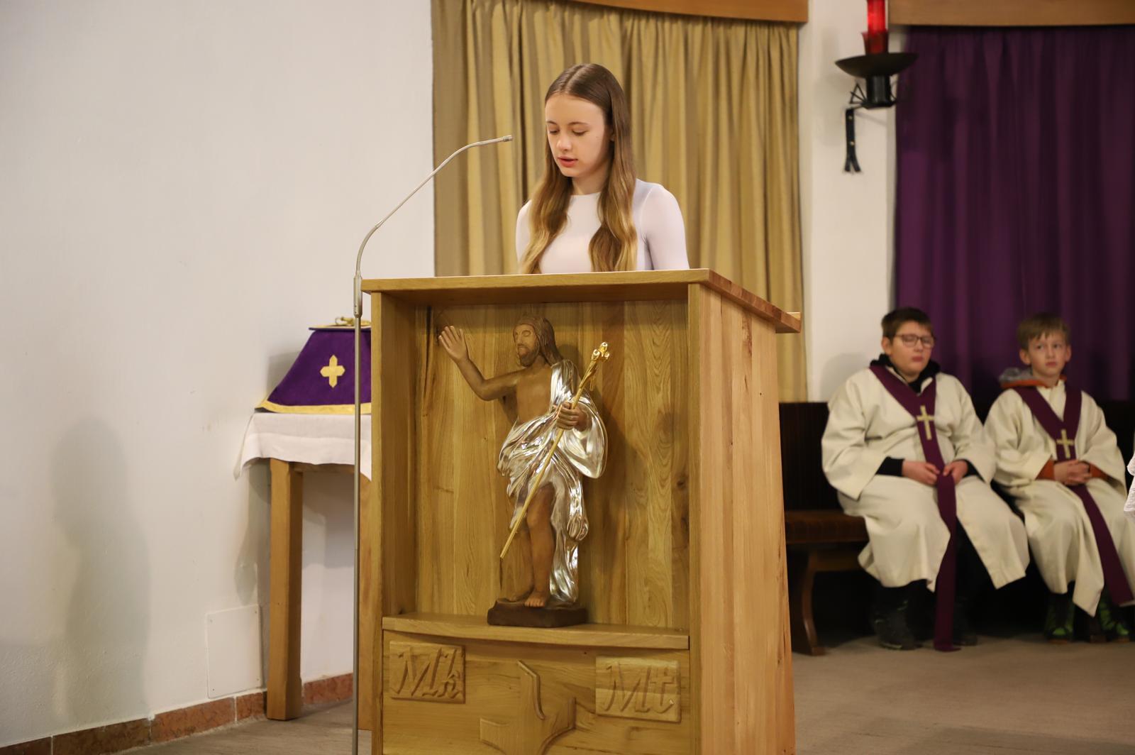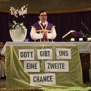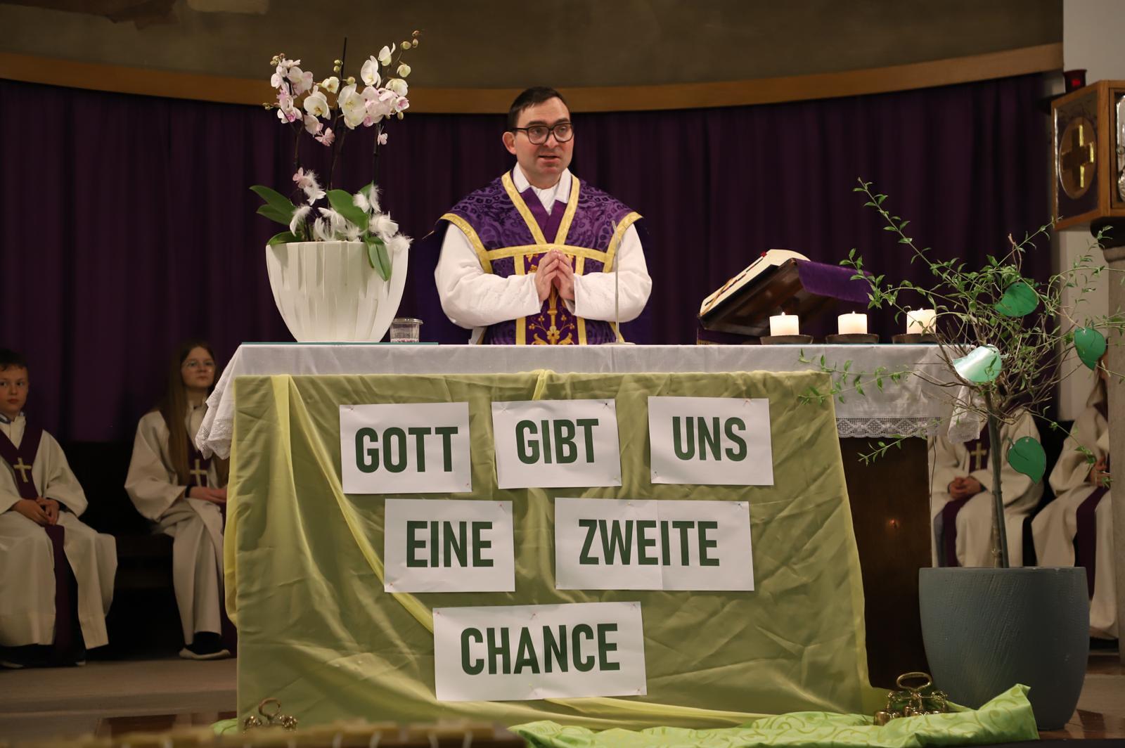 Das Thema war: Gott gibt eine zweite Chance. Die Erstkommunionkinder haben ihre Kreuze bekommen und die Firmlinge haben das Evangelium in verteilten Rollen gelesen. Es war eine sehr ansprechende Feier.