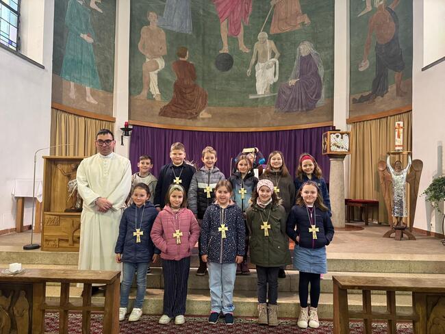 Ein besonderer Moment war die Übergabe der geweihten Kreuze an die Erstkommunionkinder. Dieser Schritt begleitet sie weiter auf ihrem Weg zur Erstkommunion.
