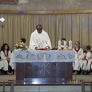 Gern angenommen hat Herr Kiadi auch die Frauen- und Familienmessen. Dadurch waren, (wie er es von seiner Heimat gewohnt war) die Messen viel lebendiger. Er ließ dabei dem tüchtigen Vorbereitungsteam viel Freiraum bei der Gestaltung.