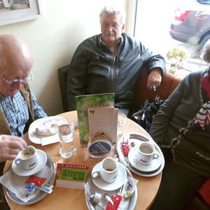 Bei Dunkelheit und heftigem Regen fuhr unser voll besetzter Bus in Oberkappel ab in Richtung Maria Schmolln. Nach Passau begannen wir mit dem Rosenkranzgebet. Wir waren sehr zeitig am Ziel, sodass wir uns noch vor dem Gottesdienst mit Kaffee und Tee stärkten.
