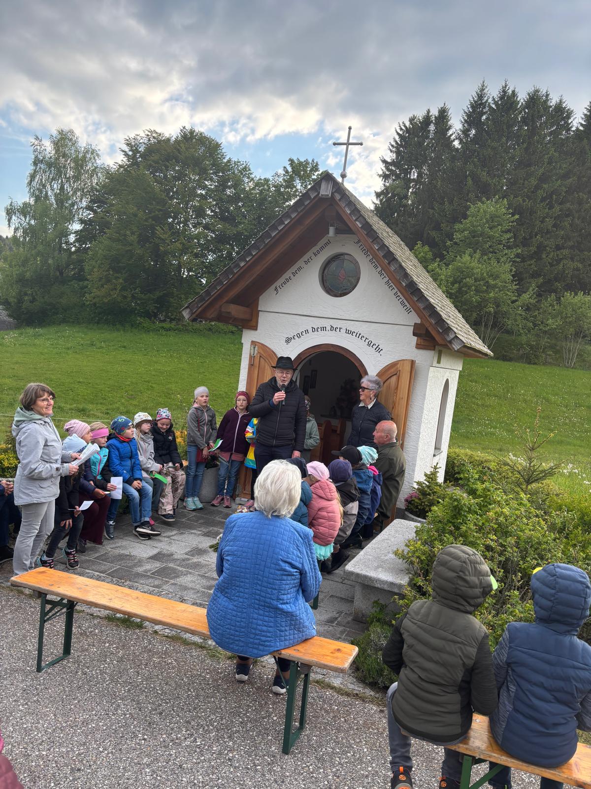 Auch in diesem Jahr luden Gerlinde und Erich Schornsteiner in die Neumühle zur Feier der Maiandacht ein. Gestaltet wurde diese von den Erstkommunionskindern unter der Leitung von ihrer Religionspädagogin Waltraud Köpplmayr.