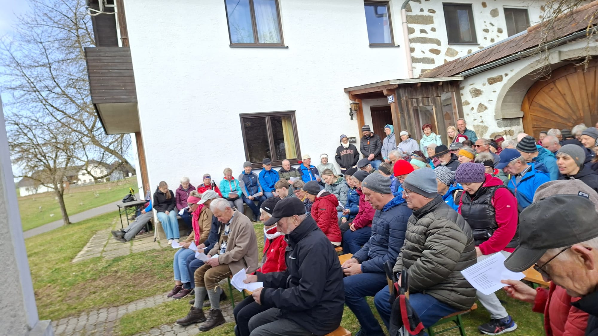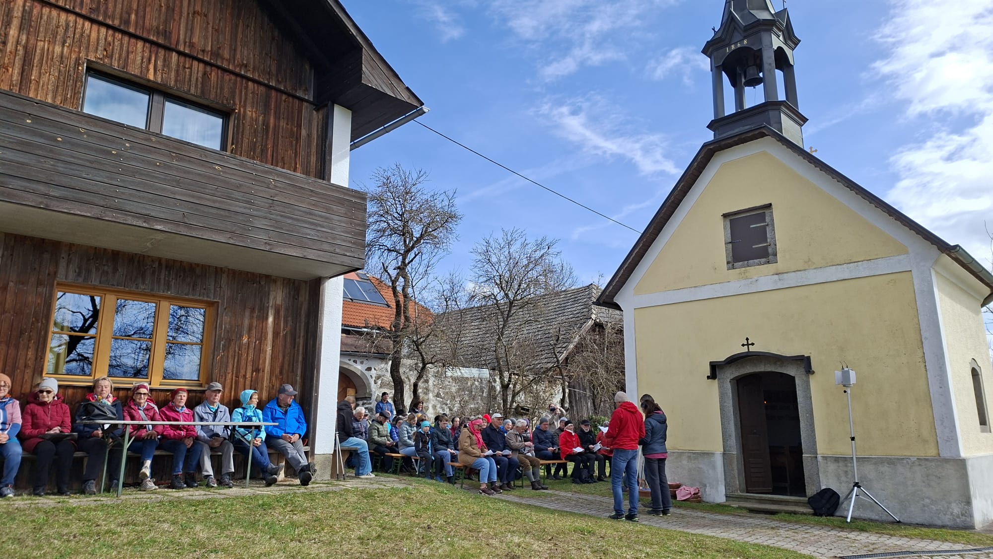 Nach einer kurzen Einstimmung in der Pfarrkirche brachen die Gläubigen auf, um zur Brücke der Begegnung zu wandern. Gemeinsam mit Pilgern aus den Pfarren Traberg, Waxenberg und Zwettl/Rodl ging es zum Ziel: der Loama-Kapelle, wo eine Andacht gefeiert wurde. Im Anschluss gab es für die Stärkung Brot, Brioche und Getränke.