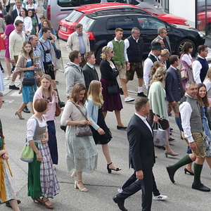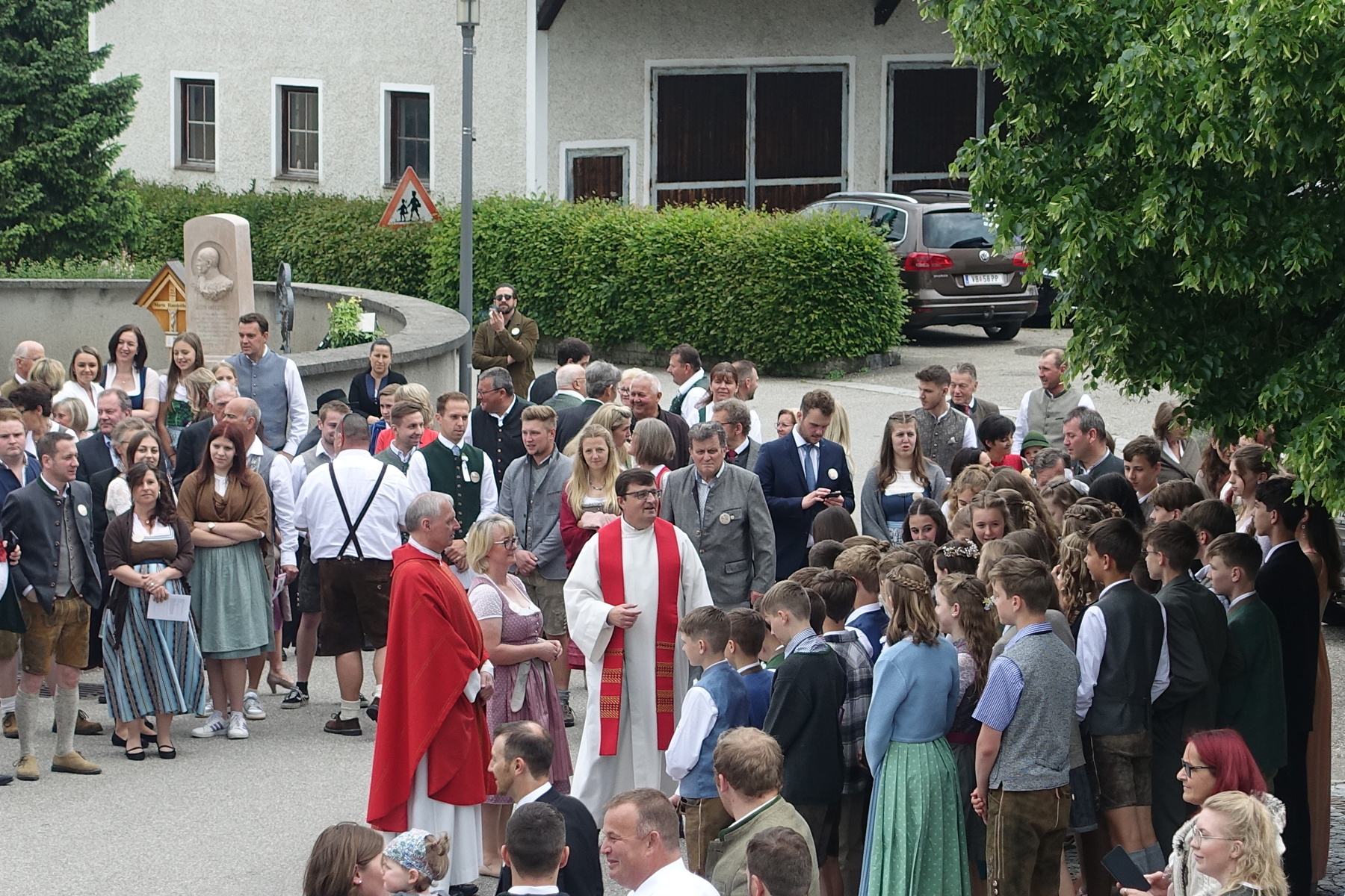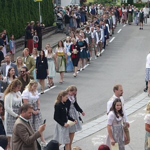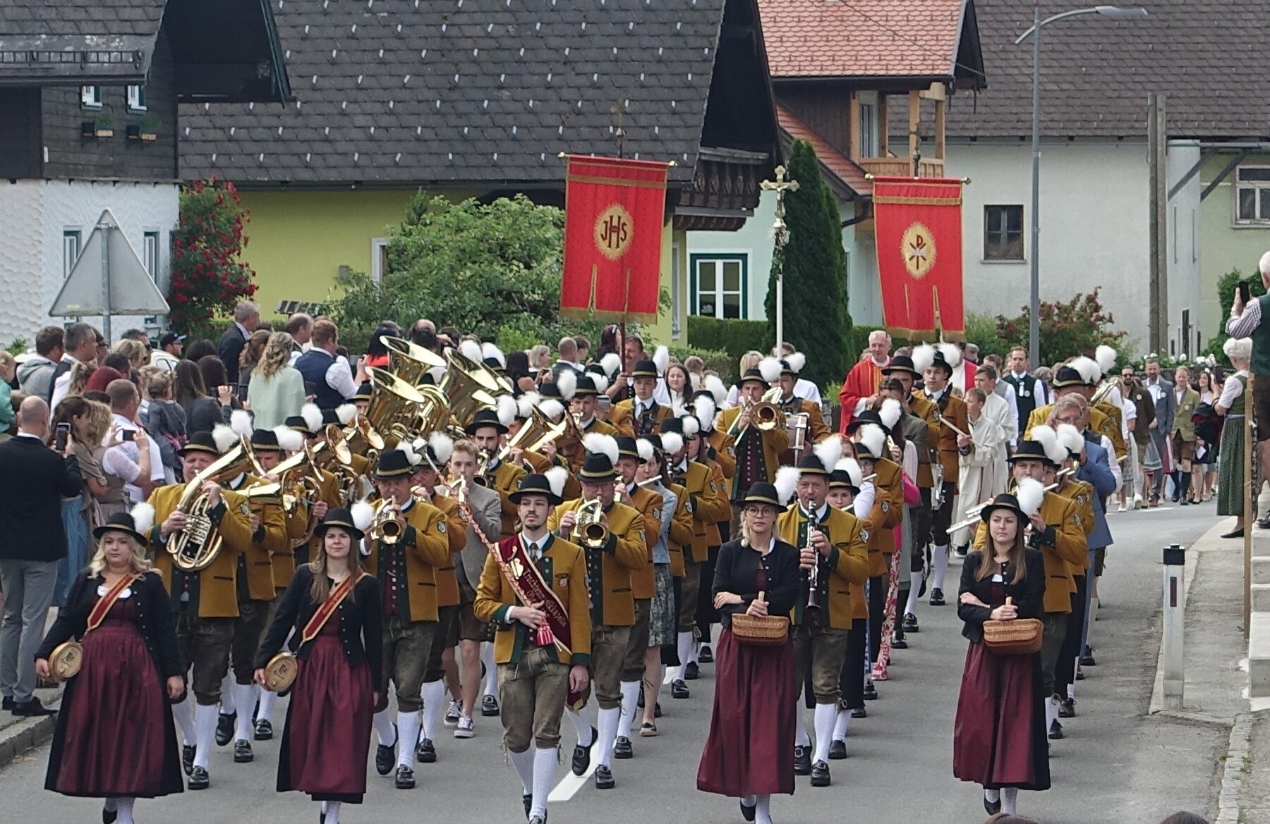 Begleitet von der TMK Oberwang zog der Festzug vom Gemeindeamt zur Pfarrkirche.