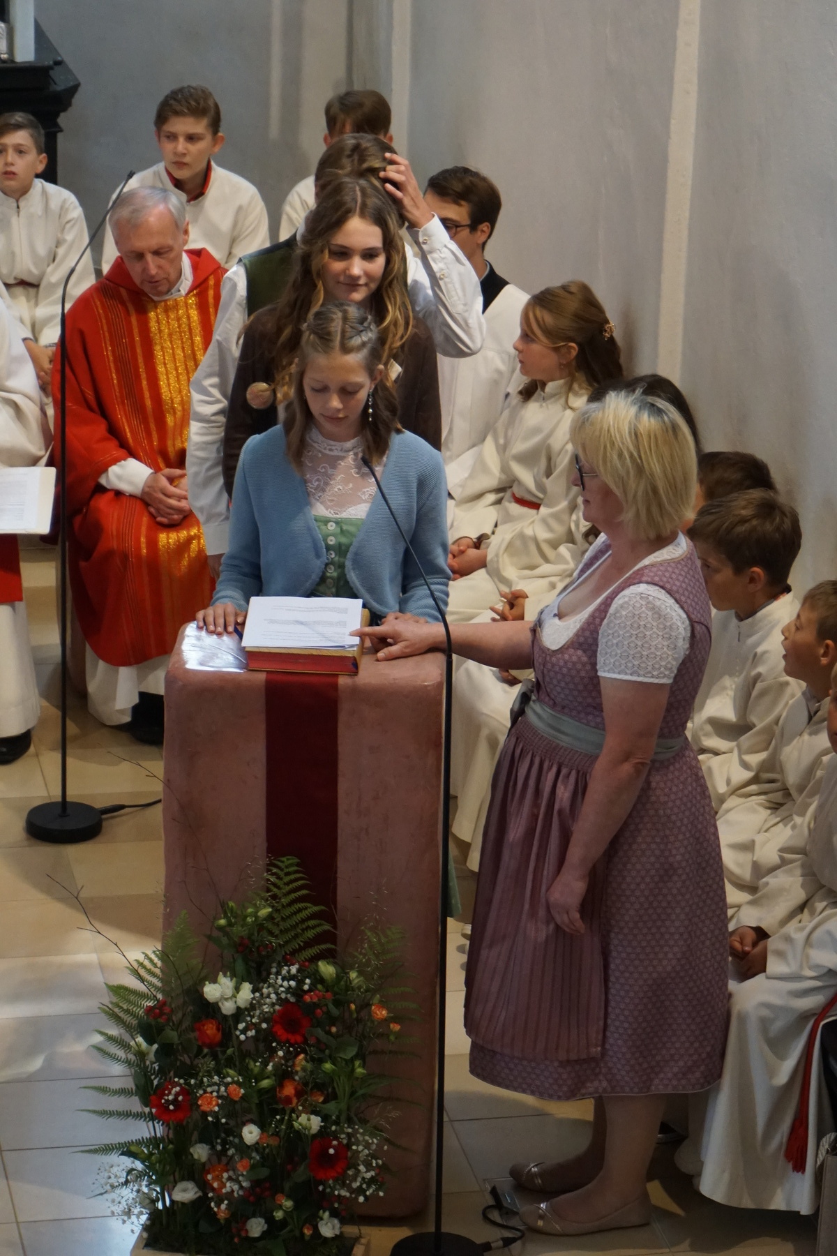 Nach Erneuerung des Taufversprechens sagte ihnen Dechant Greinegger mit Handauflegung und Salbung Gottes Geist als Kraft fürs Leben zu.