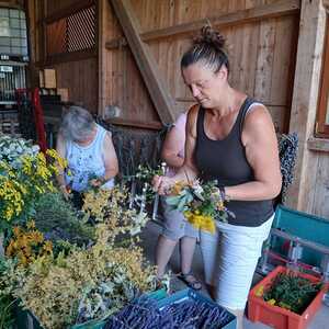 Auch heuer traffen sich die Frauen der kfb wieder zum Binden der Kräuterbüschel, welche beim Festgottesdiest an Maria Himmelfahrt von unserem Pfarrer Thomas Lechner gesegnet wurden.