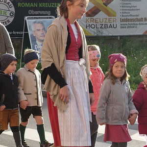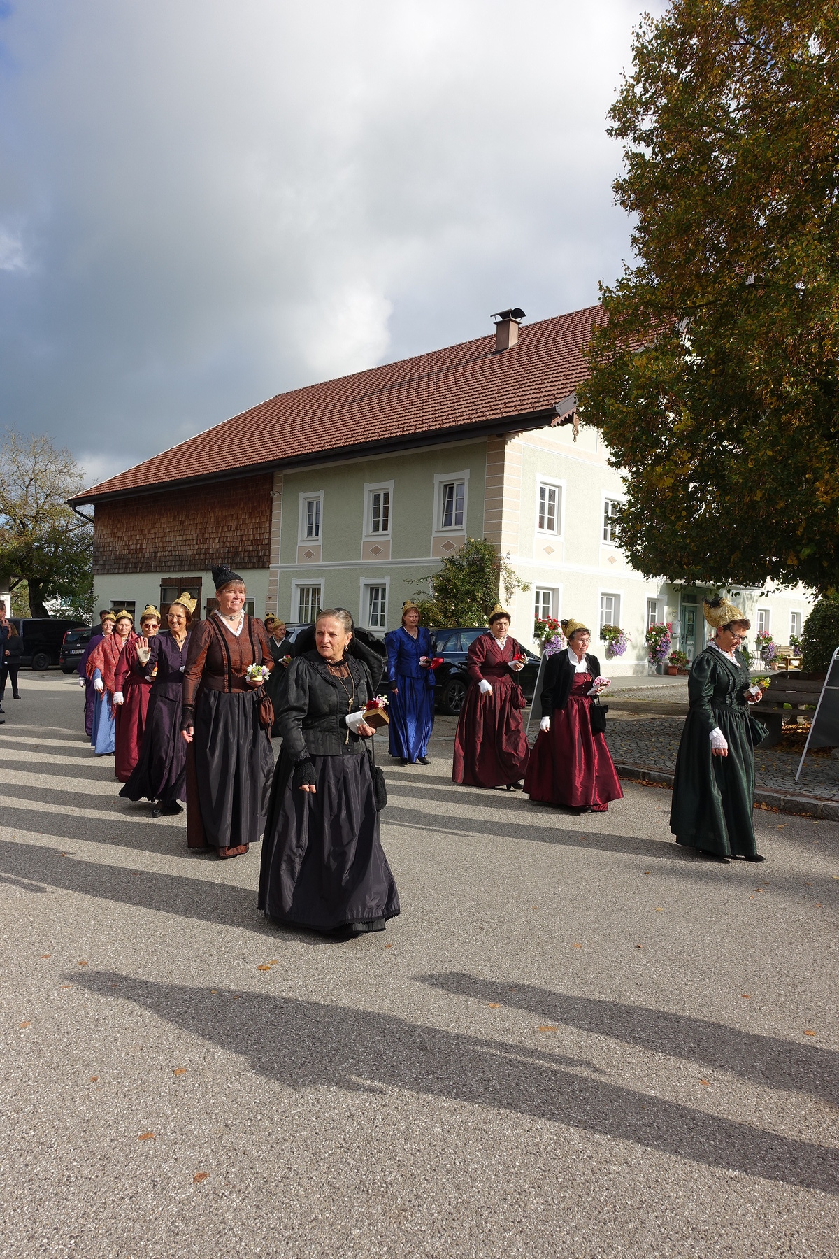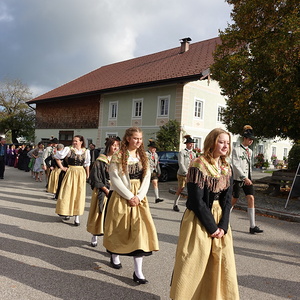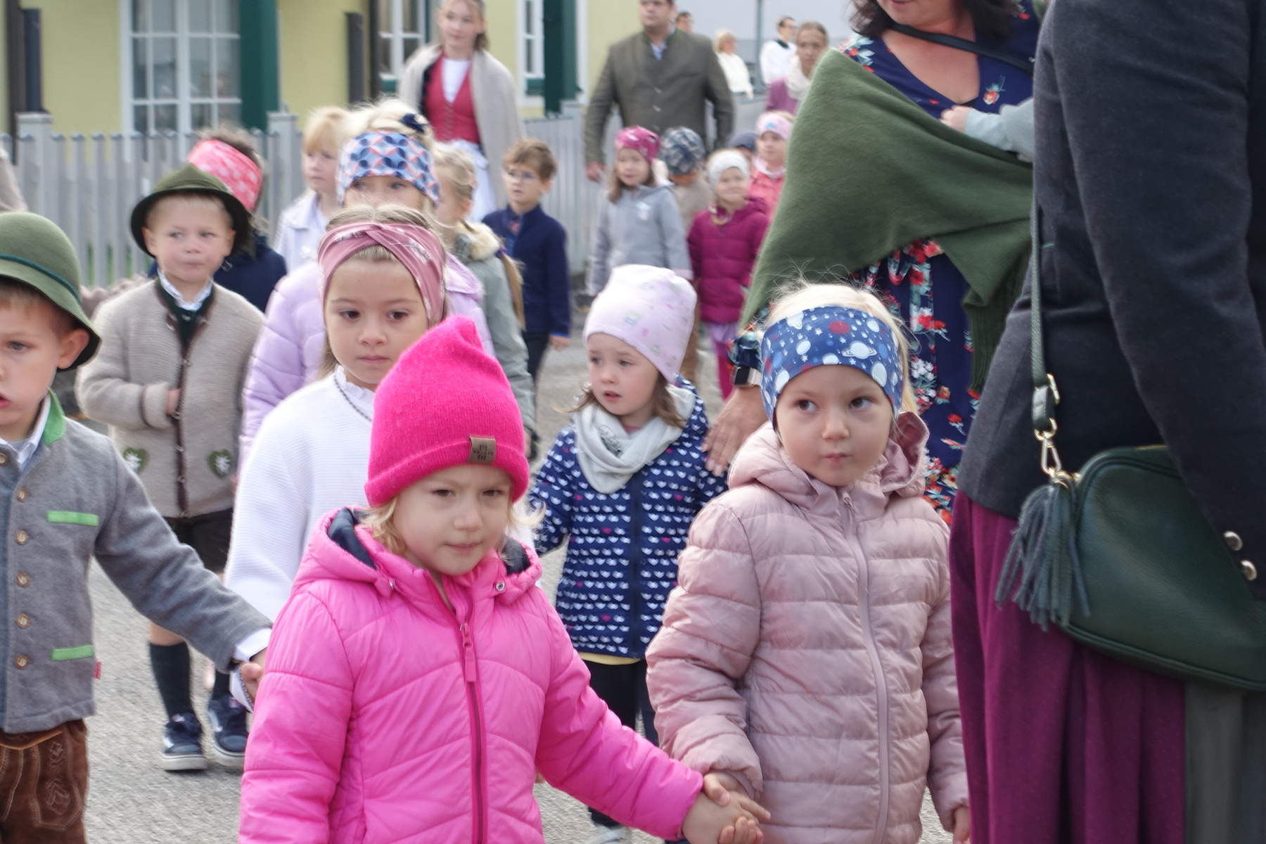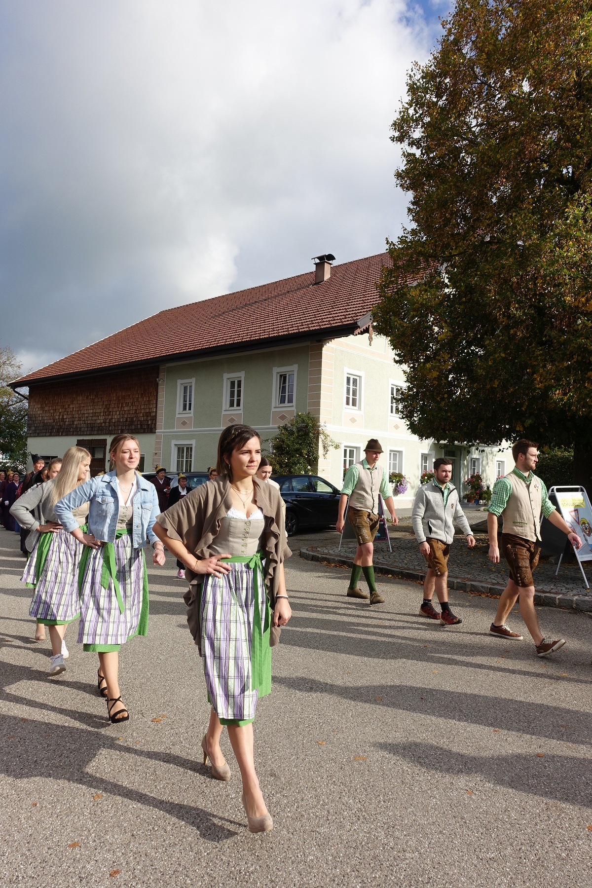 Um 08:30 Uhr fand vor dem Pfarrhof die Segnung der Erntekrone statt. Anschließend zog der Festzug mit den örtlichen Vereinen, den Erstkommunionkinder und dem Kindergarten zum Gottesdienst in die Pfarrkirche ein. Im Anschluss luden die Bäuerinnen im Vereinsheim zu einer Agape ein.