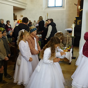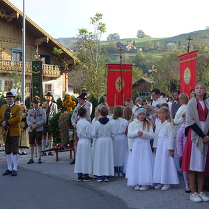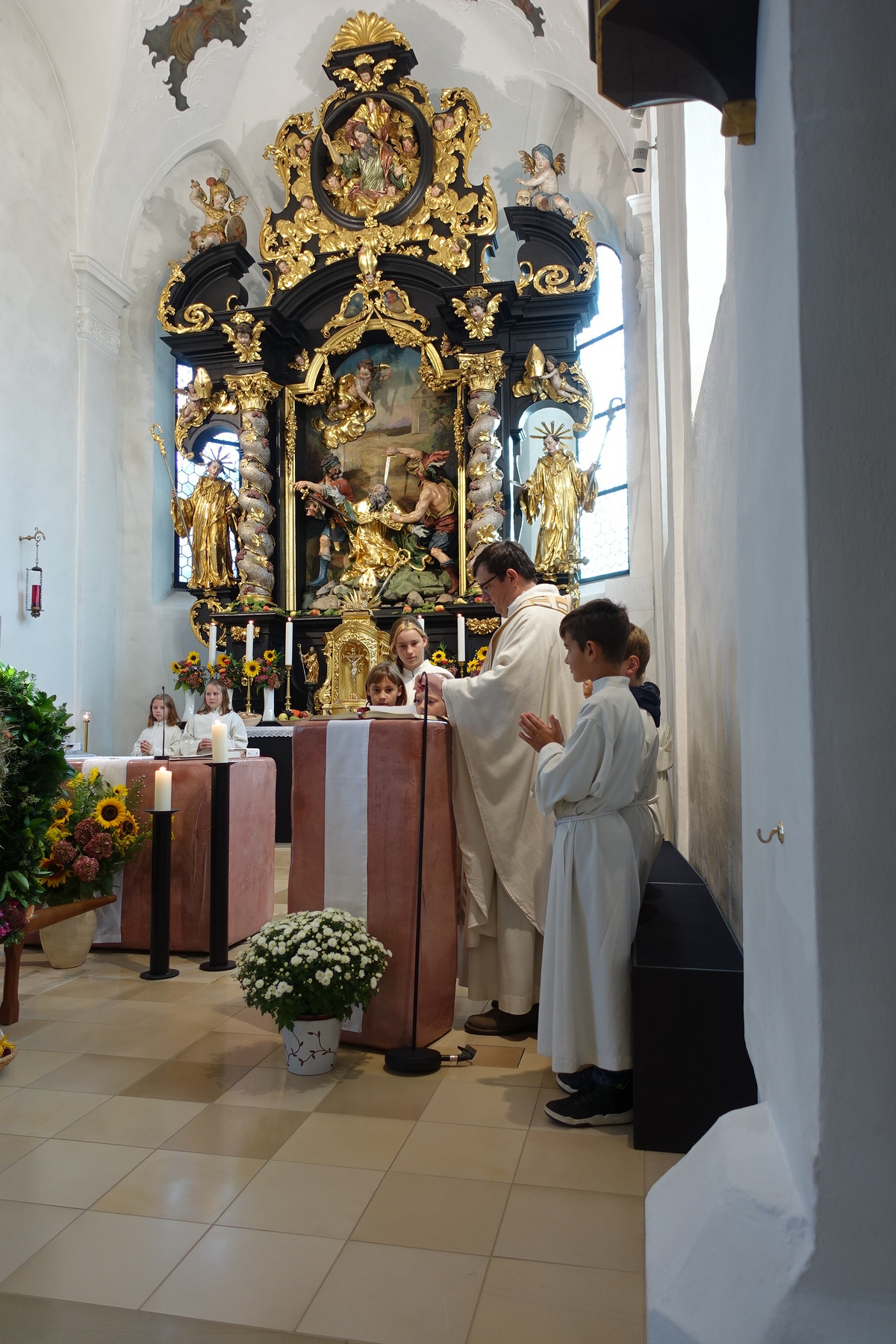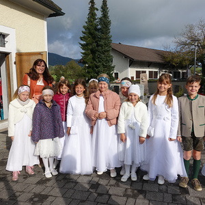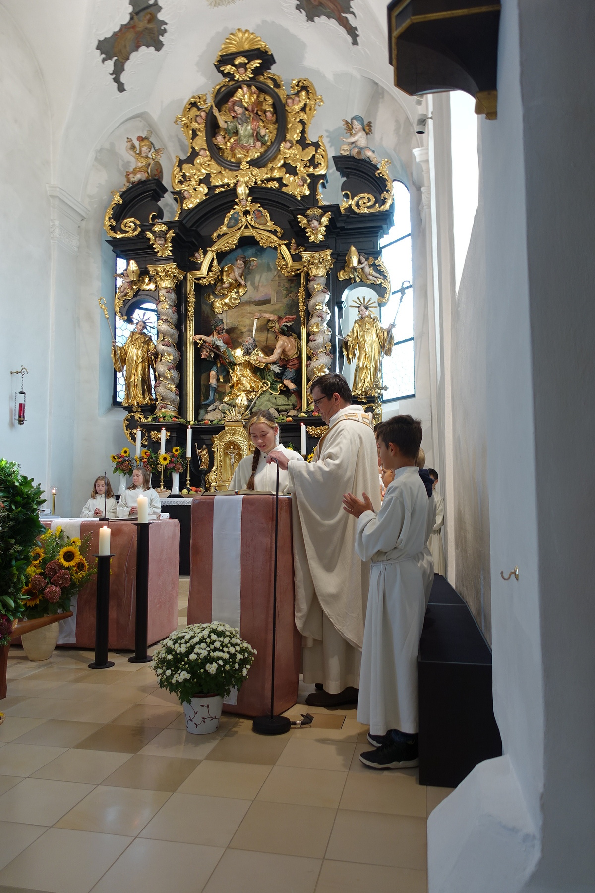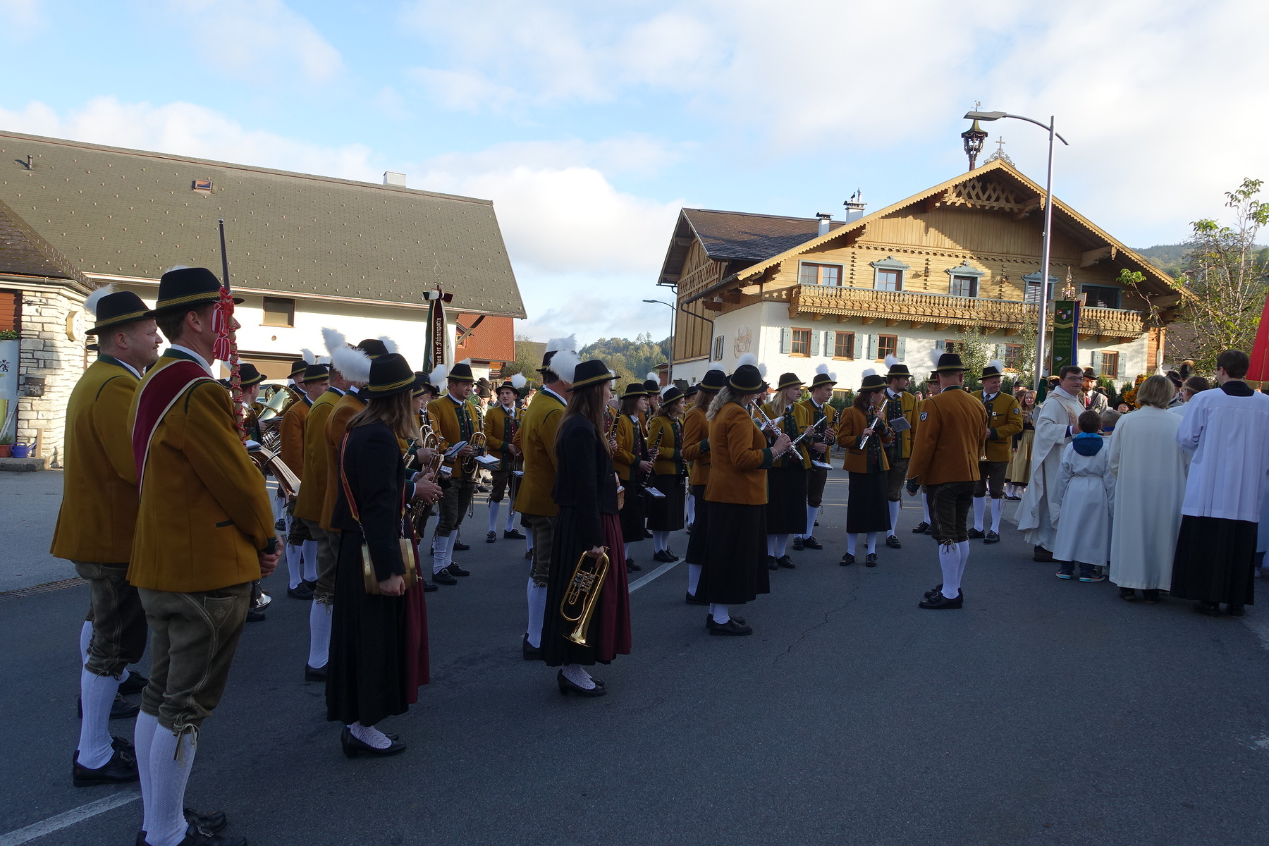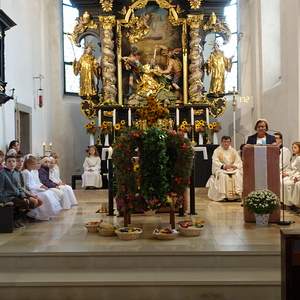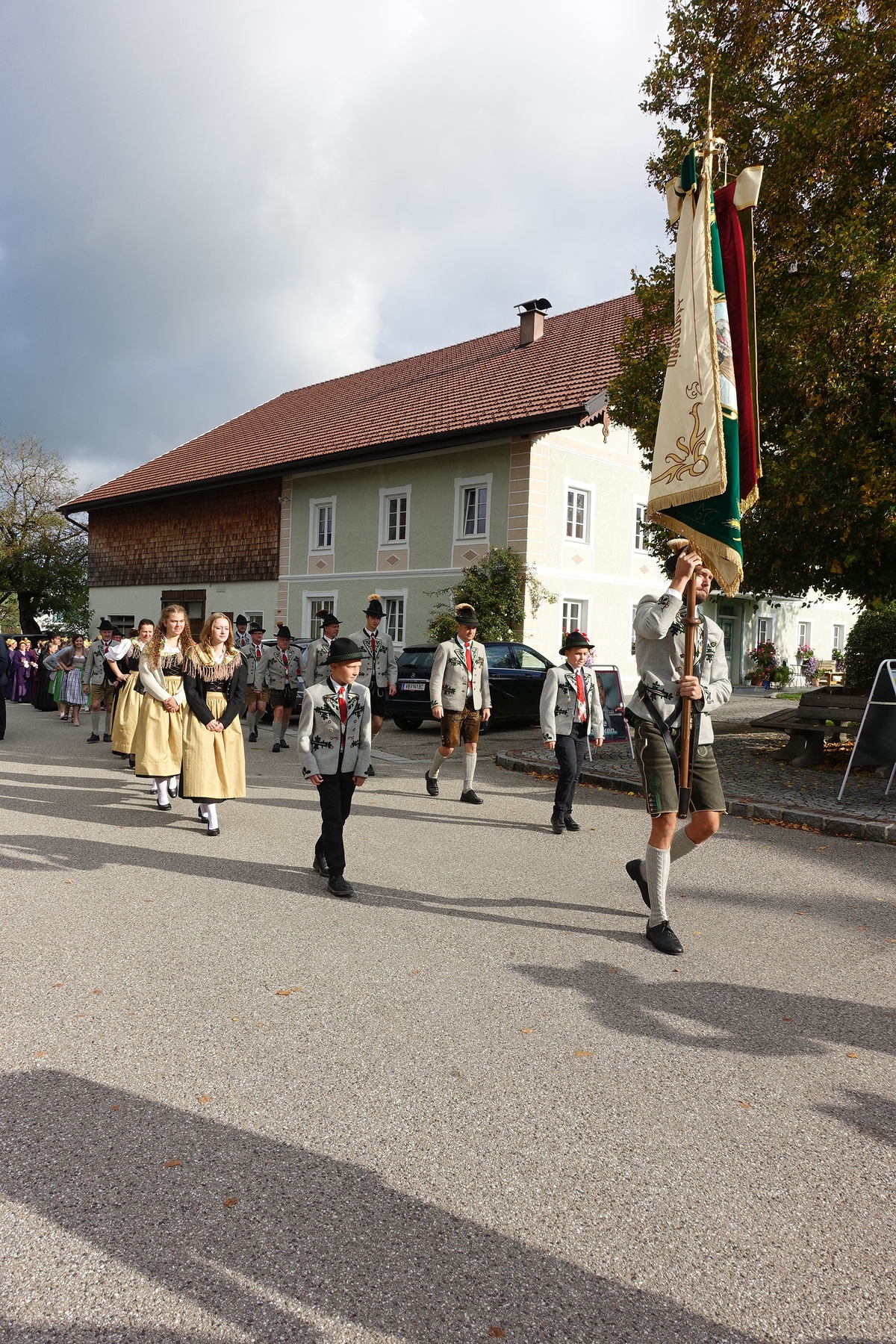 Um 08:30 Uhr fand vor dem Pfarrhof die Segnung der Erntekrone statt. Anschließend zog der Festzug mit den örtlichen Vereinen, den Erstkommunionkinder und dem Kindergarten zum Gottesdienst in die Pfarrkirche ein. Im Anschluss luden die Bäuerinnen im Vereinsheim zu einer Agape ein.