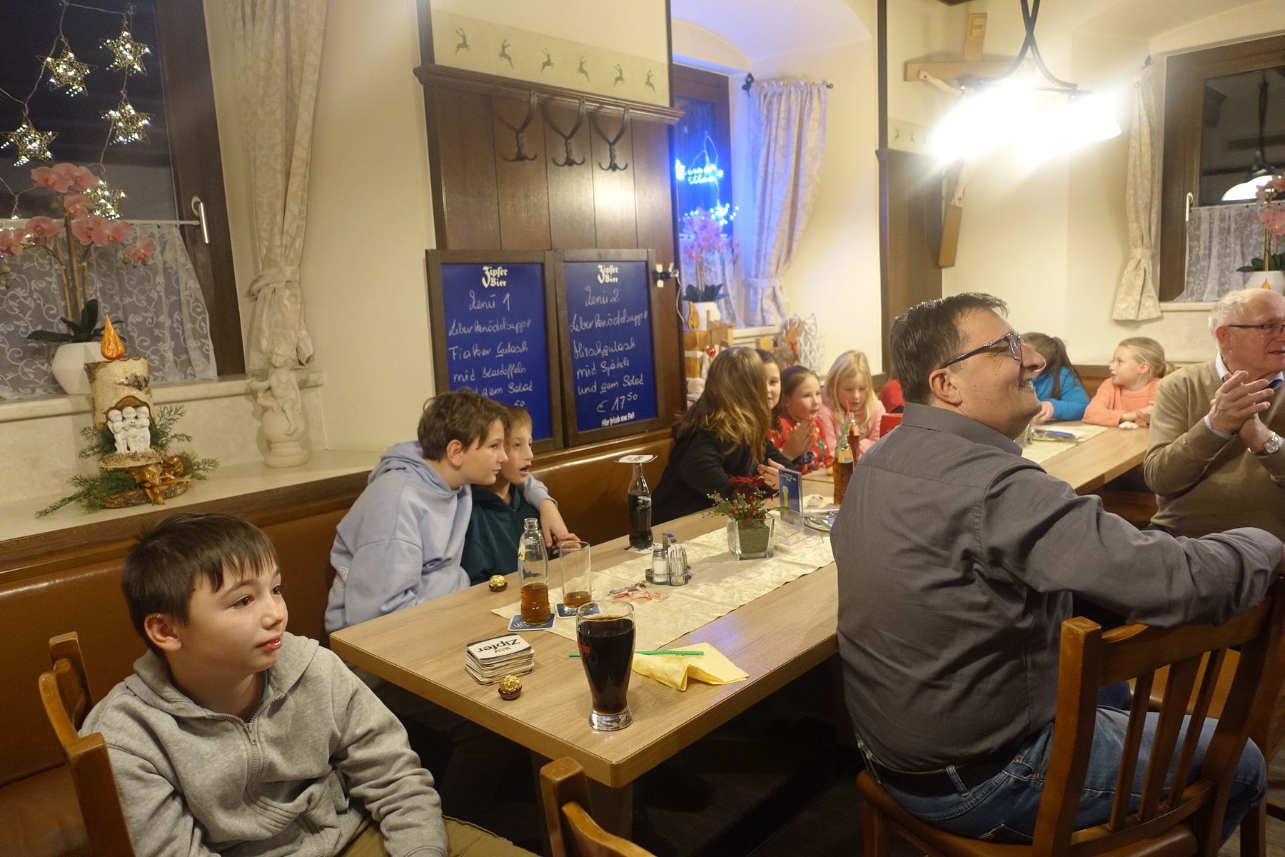 Am Namenstag des Hl. Nikolaus (6.12.) fand die heurige Nikolausfeier unserer Ministranten im Gasthaus Stabauer statt. Dieses Jahr kam der Hl. Nikolaus in Begleitung eines Engels und von drei Krampusen. Der Nikolaus dankte allen Ministranten für ihr pflichtbewusstes Ausüben ihres Dienstes in der Kirche. Nach dem Austeilen der Geschenke wurden unsere Minis noch mit einem köstlichen Essen verwöhnt, und ließen die Feier gemütlich ausklingen.