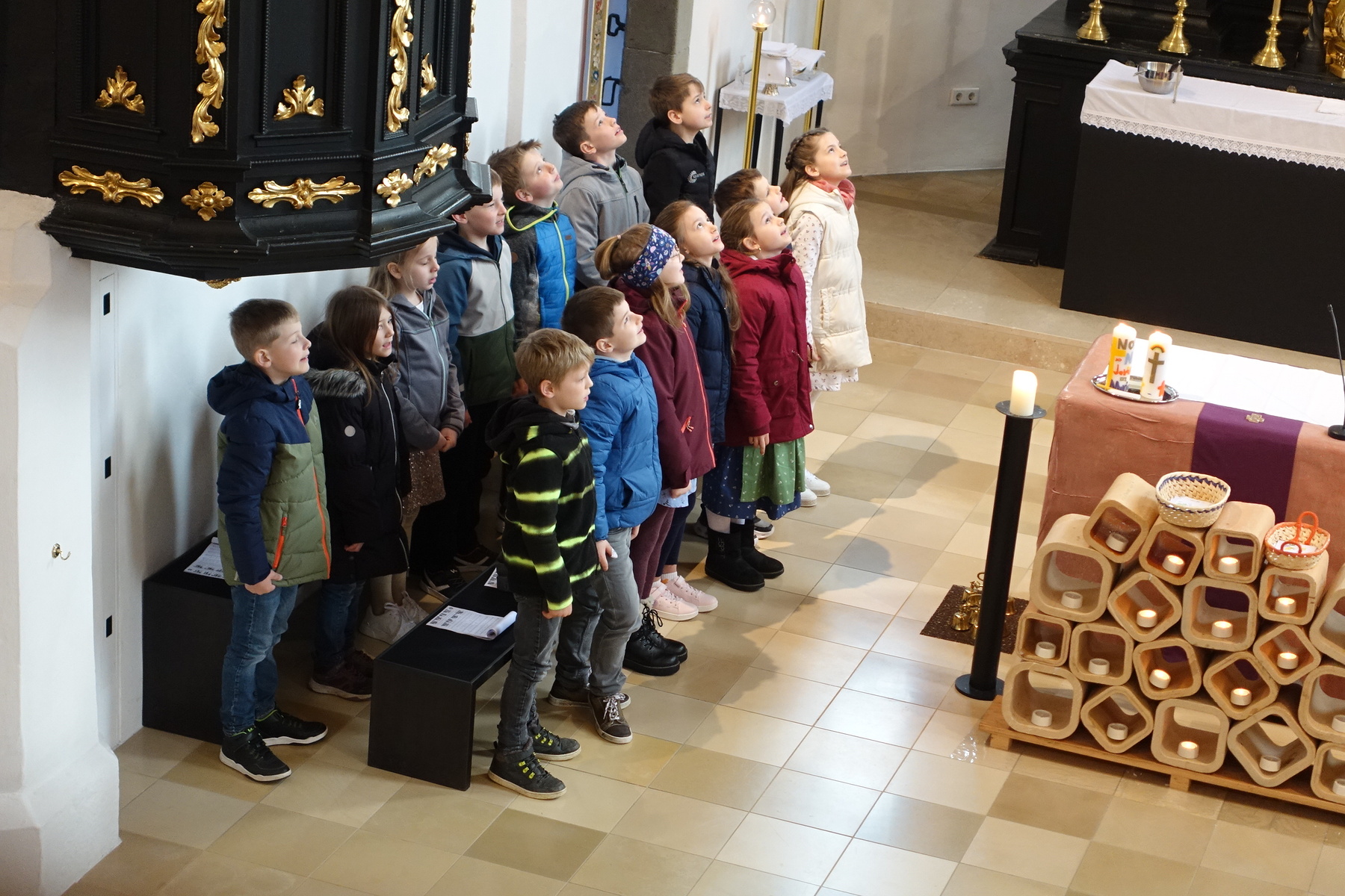 Am 06. 04. 2025 stellten sich unsere 14 Erstkommunionkinder der Pfarre vor.