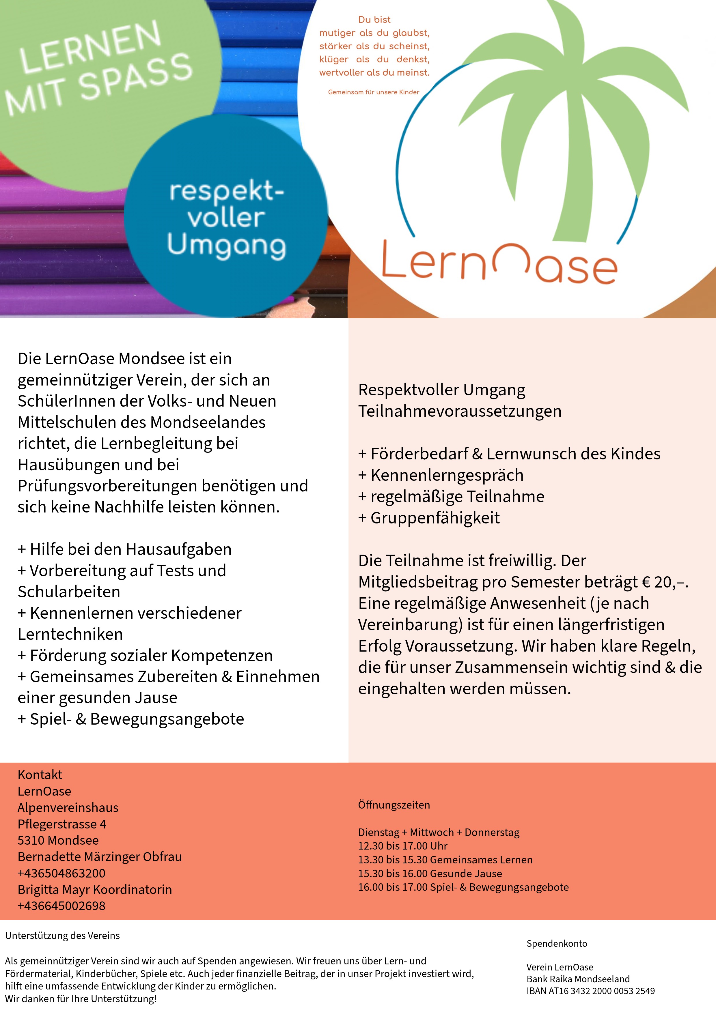 Lernbegleitung für Schüler der Volks- und Neuen Mittelschulen des Mondseelandes.