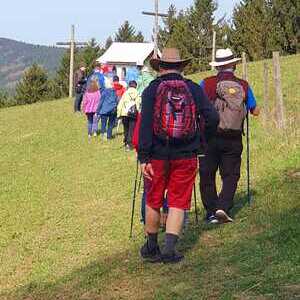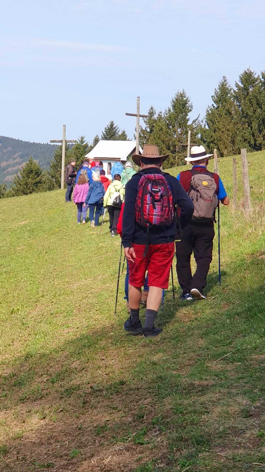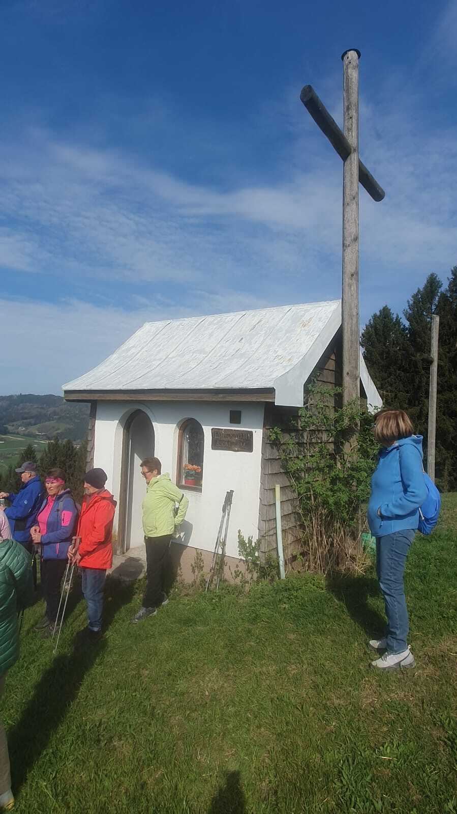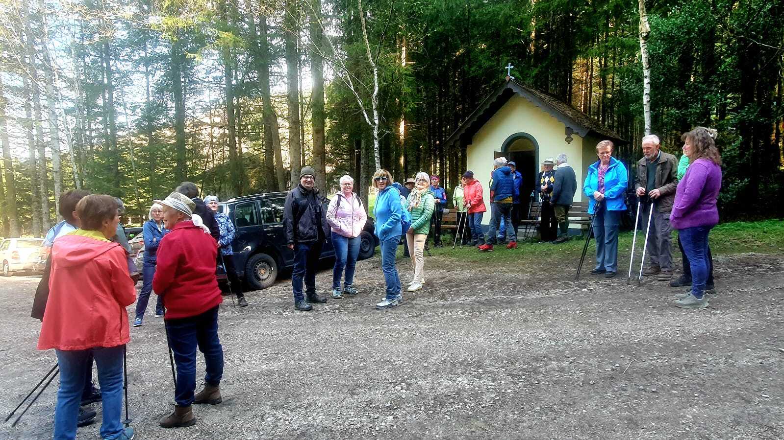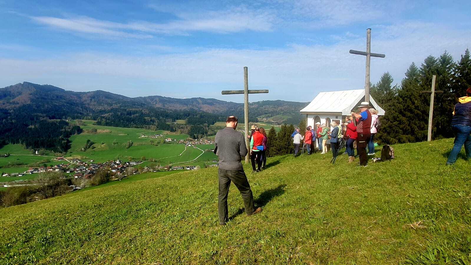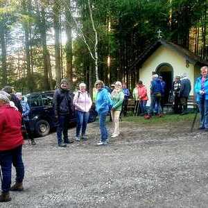 Unsere Wanderung am 18.04.2026 führte uns auf den Ifang (830 m). Sie war eine Wohltat für Körper und Geist. Beginnend bei der Lourdeskapelle, haben wir die 100 Höhenmeter ganz bewusst und mit allen Sinnen zurückgelegt. Unterwegs stand nicht das Tempo, sondern das Wahrnehmen der Natur im Vordergrund. Oben an der Kapelle mit den drei Kreuzen wurden wir mit einer weiten Aussicht belohnt, die Raum für Stille und innere Einkehr bot. Ein wertvoller Weg, der uns gestärkt und inspiriert wieder ins Tal zurückgeführt hat.