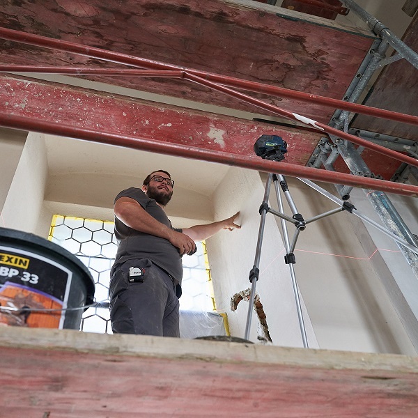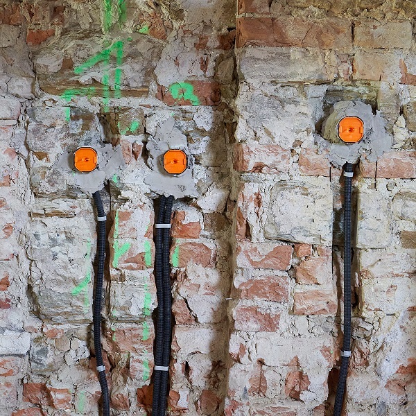 Die Leerverrohrungen, die heute verlegt worden sind, führen bald ein Da-Sein wie U-Boote. Im Untergrund. Nicht sichtbar. Nur die orangen Abdeckungen verraten ihren Standort. Wer da? Freund oder Feind? Gott sei Dank sind es nur die zwei Freunde von Fa. Elektro Wimmer, die mit einem Laser neue Ziele vermessen.