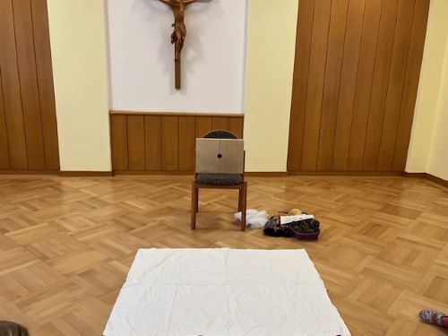 Mit großem Eifer waren die Mädchen und Buben beim Hören und Legen der Geschichte dabei. Sie hörten das Erzähltheater "Die fünf im Handschuh".