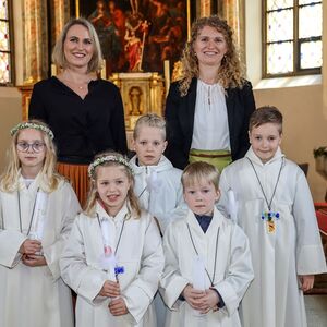 Langsam legt sich die Aufregung. Die schwungvollen Lieder, die sie in den Vorbereitungsstunden einstudiert haben, gehen ins Gemüt und bewirken, dass auch Schüchterne aus sich herausgehen. Im Lied „Post an Gott“ senden die Kinder ihre Anliegen zum Himmel. Rührung macht sich in den Kirchenbänken breit, dort, wo die Eltern, Geschwister, Taufpaten, Großeltern, Onkel und Tanten sitzen.