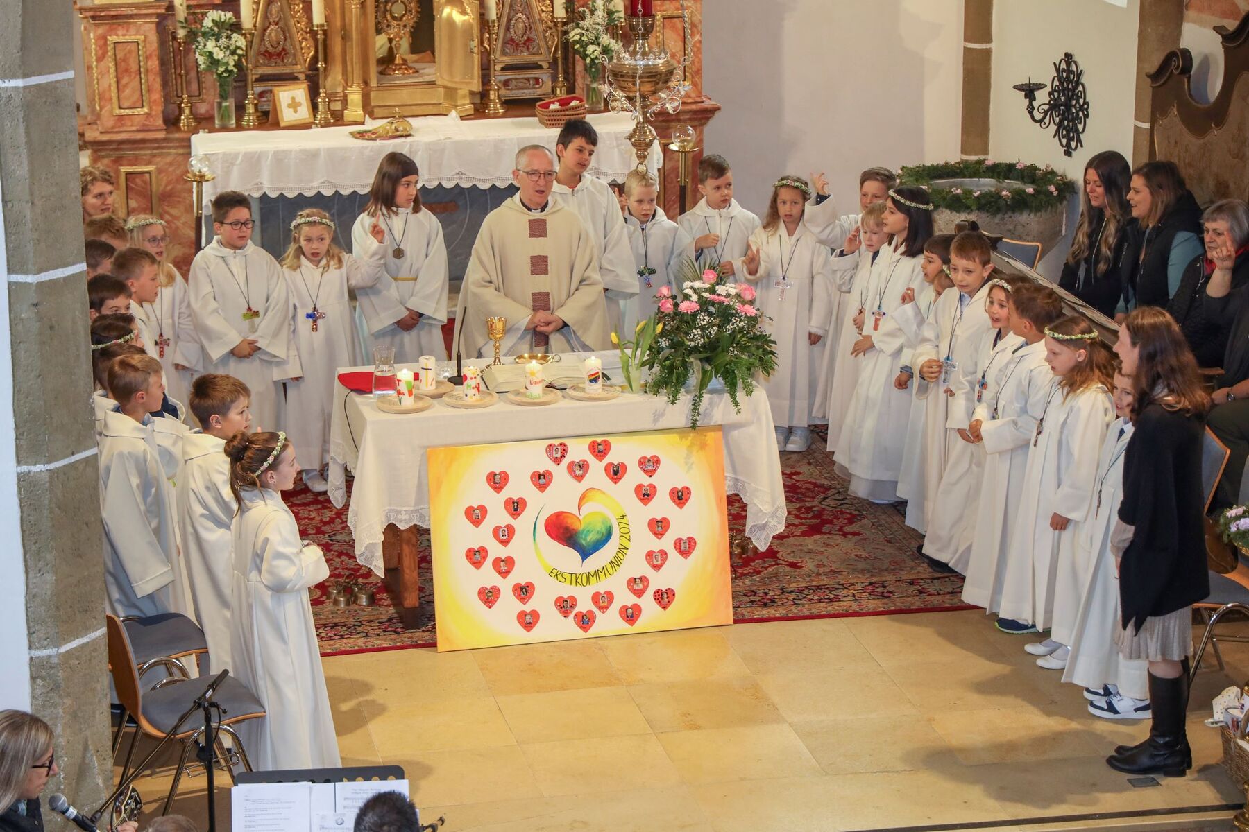„Ganz nahe am Herzen Jesu“ wollen die Kinder an diesem Tag sein, wenn sie zum ersten Mal die Kommunion empfangen dürfen. Sie sitzen dicht an dicht rund um den Altar, zusammen mit ihren Lehrerinnen, Tischmüttern und der Religionslehrerin.