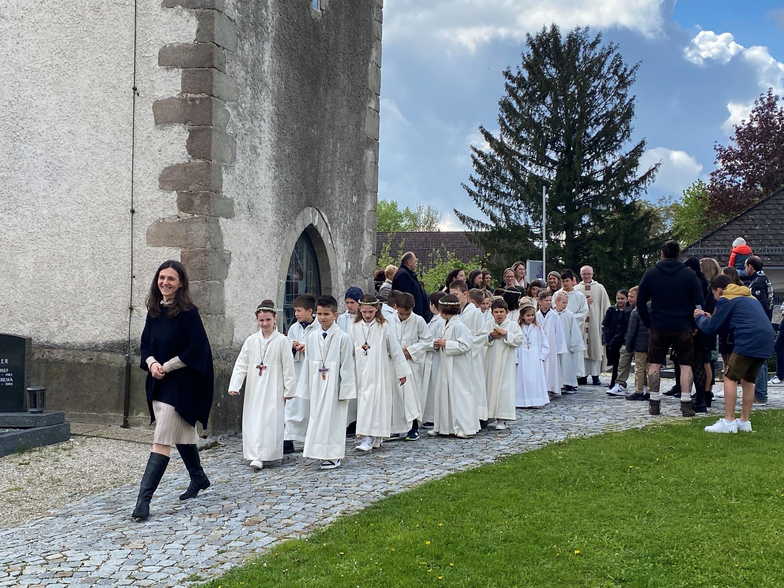 Berührende Momente gibt es auch am Donnerstag darauf beim Dankgottesdienst der Erstkommunionkinder, wo alle ihre persönlichen Dankessätze an Jesus formulieren und vortragen.