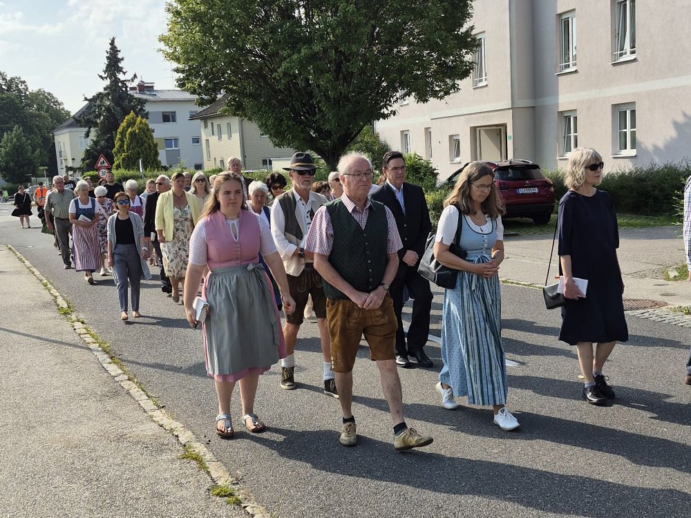 ∙ den Erstkommunionkindern mit Tischmutter Irmgard Schätz, die eifrig Blumen gestreut haben und mit ihrem Lied beim Altar vor der Schule alle Herzen erfreut haben