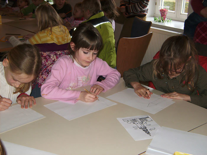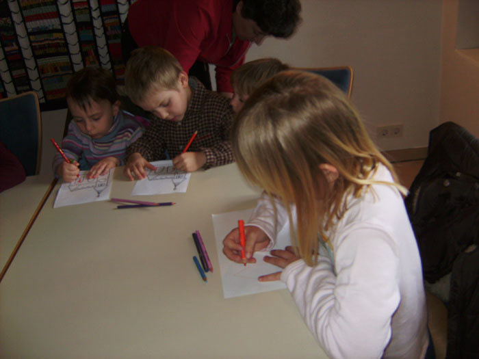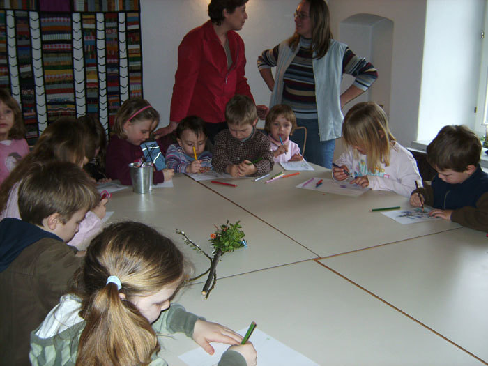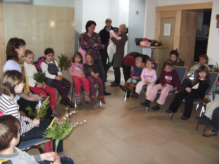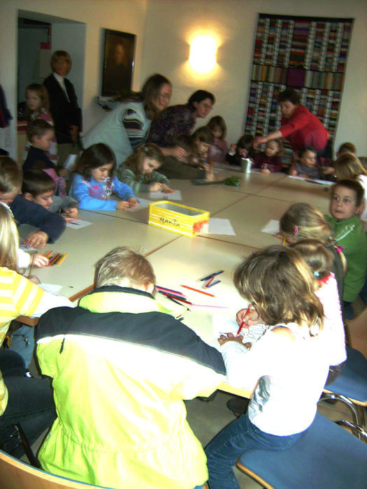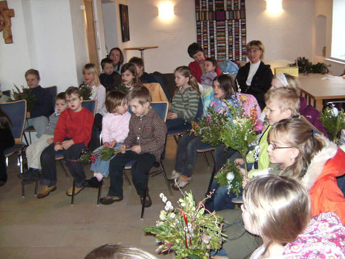 Nach der Prozession von der Schule zur Kirche sind ca 40 Kinder, auch die Erstkommunionkinder, gleich ins Pfarrheim gegangen.