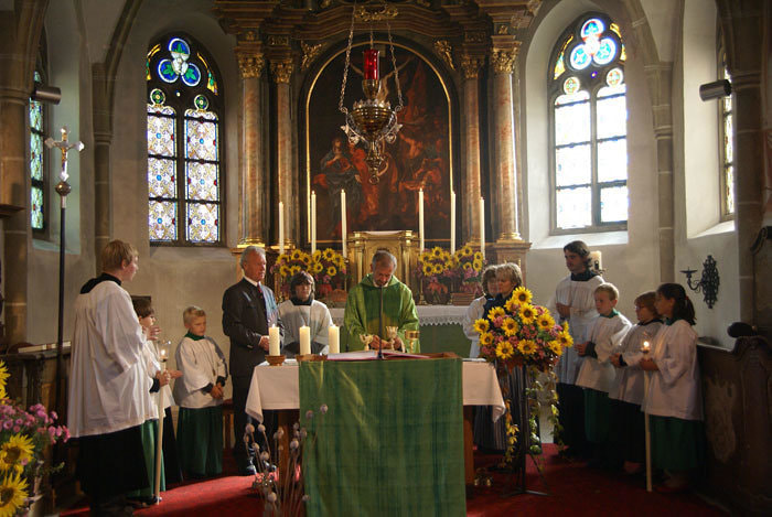 Festzug mit der Erntekrone, anschließend an den Erntedankgottesdienst Frühschoppen mit der Trachtenkapelle Oftering