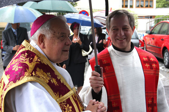 Obwohl es sich zu Beginn des Gottesdienstes einregnete, konnte der Geist und die Stimmung in der übervollen Kirche nicht ausgelöscht werden. Altbischof Maximilian Aichern, nach eigenen Angaben 78 Jahre „alt“, sprach in seiner kraftvollen und mitreißenden Predigt, was es heißt, als Christ/in geisterfüllt zu leben: