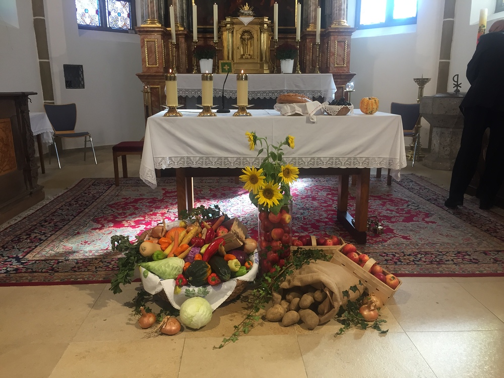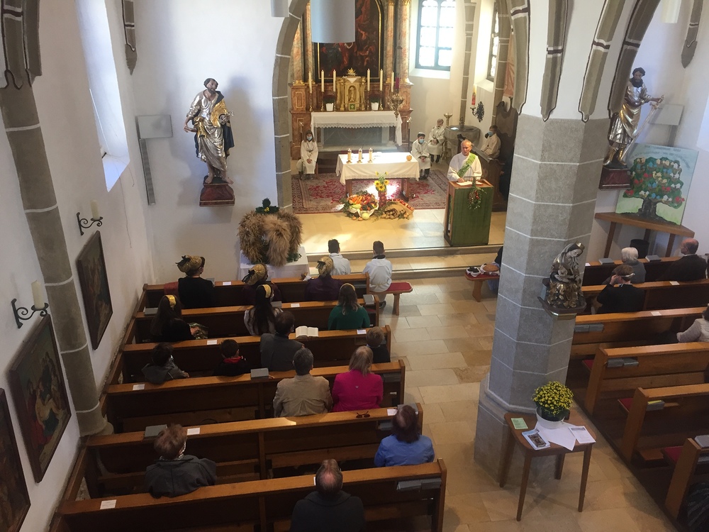 Diesmal war das Erntedankfest anders als sonst: wegen kühler Temperaturen musste der Wortgottesdienst in der Kirche stattfinden und dabei alle Vorgaben bezüglich Corona beachtet und eingehalten werden. Trotzdem war es ein schönes und würdiges Fest für alle, die teilgenommen haben!