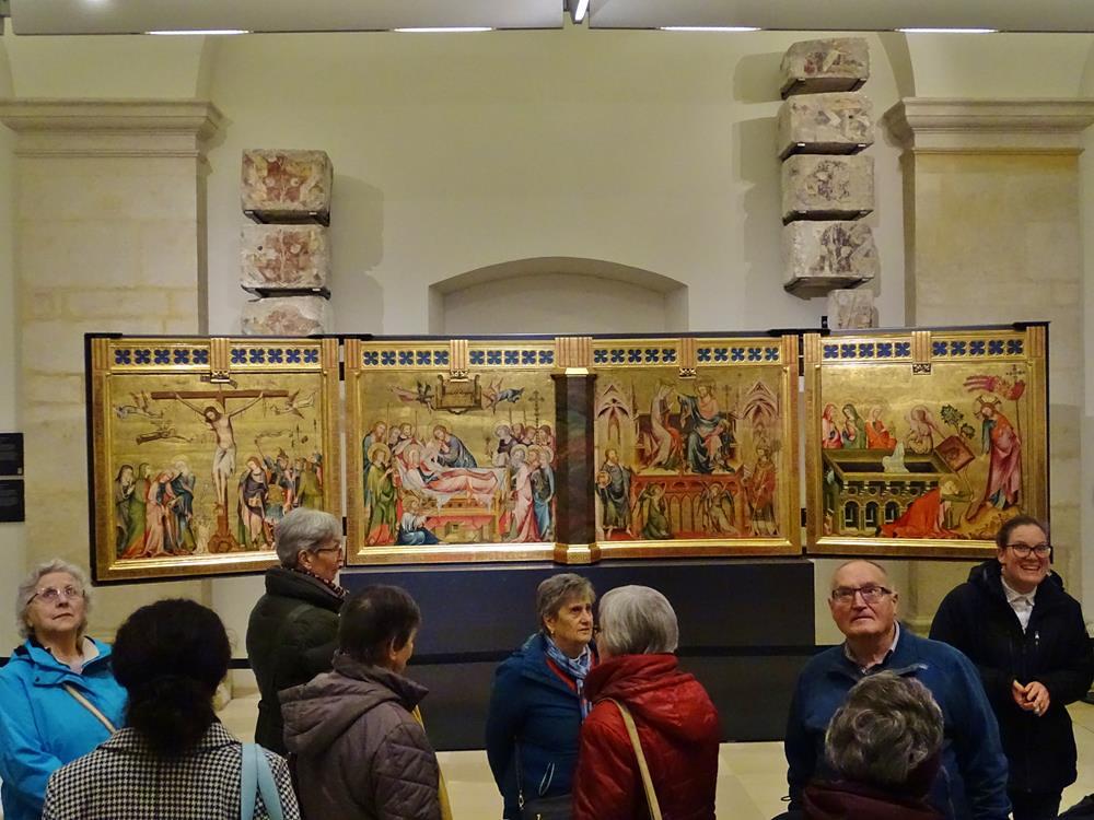Die Besichtigung der Weinkeller führte uns über 3 lange und steile Treppen, in eine Tiefe von 36 Metern, vier Stockwerke unter den Stiftsplatz. Dort erfolgt auch die Reifung und Lagerung der Weine. Und weiter ging es über den mittelalterlichen Kreuzgang, zum kostbarsten Kunstbesitz des Stiftes, dem Verduner Altar. Dieser Altar (1181) befindet sich in der Leopoldskapelle und besteht aus 51 Emailtafeln.