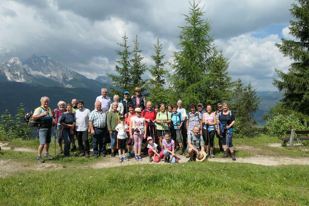 Eine von Karl Hager geführte Wandergruppe stieg vom Königsee zum Aussichtsplatz am Brandkopf auf. Die Familien erreichten vom Parkplatz in Hinterbrand über eine etwa 40 Minuten lange Wanderung den Feierplatz mit wunderbarer Aussicht zum Königsee und den umrahmenden Bergen, die Kulisse mit Watzmann, Steinernem Meer, Jenner und Hohem Göll luden zum Innehalten und Betrachten der Schöpfung ein.