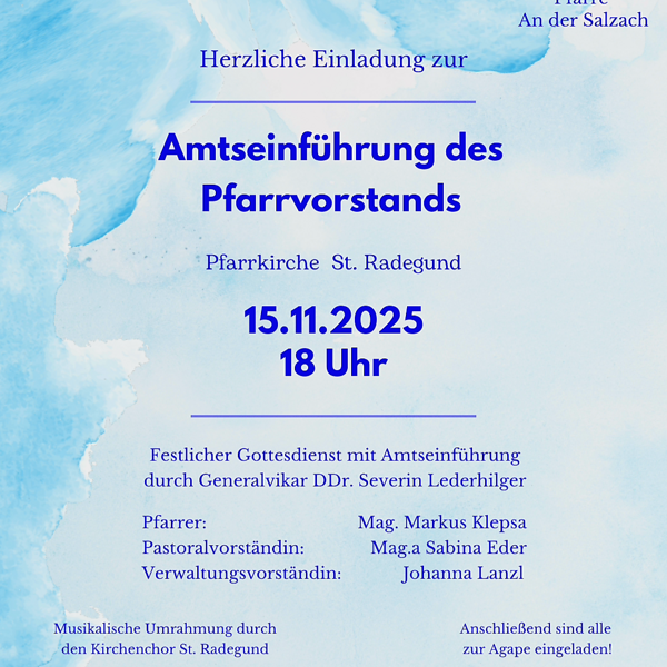 Einladung zur Amtseinführungsfeier des Pfarrvorstands