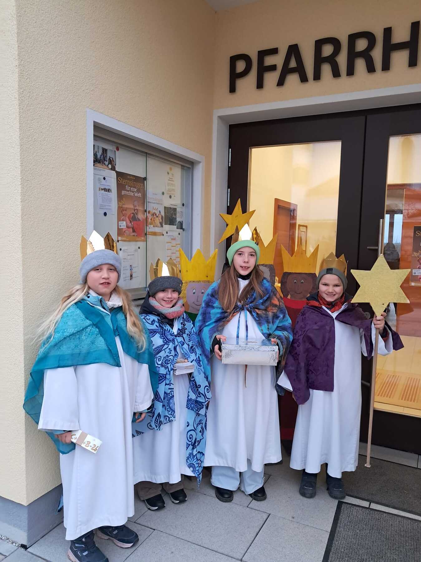 Von 2. - 5. Jänner waren 35 Kinder und Jugendliche mit ihren Begleiter:innen im Pfarrgemeindegebiet Ostermiething unterwegs, um den Segen in die Häuser zu bringen und um Spenden für 500 laufende Hilfsprojekte zu sammeln. Schwerpunktland 2026 ist Tansania. Herzlichen Dank allen Beteiligten und herzlichen Dank für Eure Großzügigkeit! Wir freuen uns sehr über ein Sammelergebnis von 9050 €.