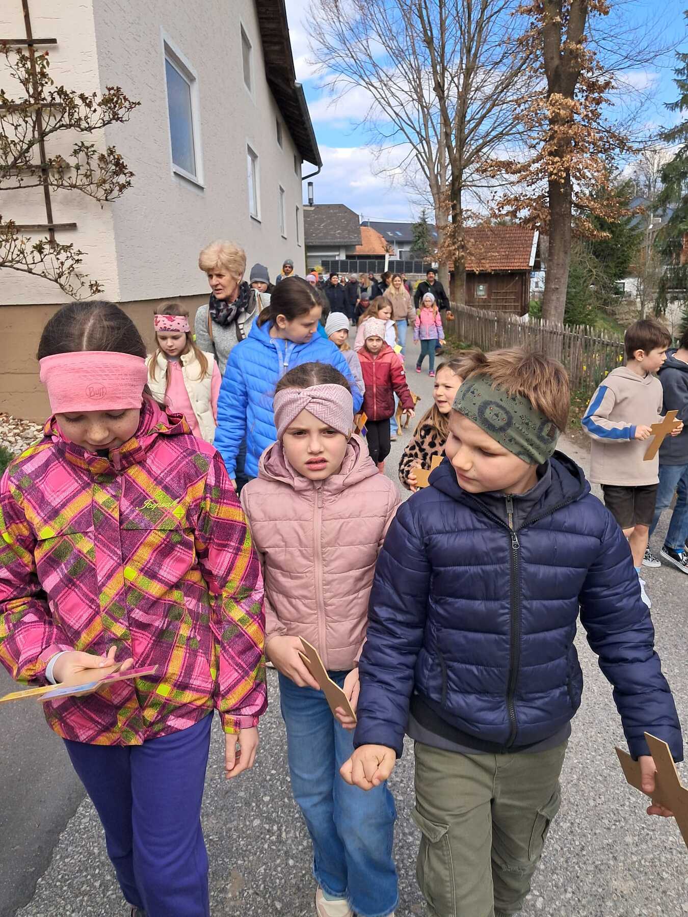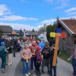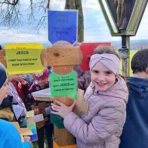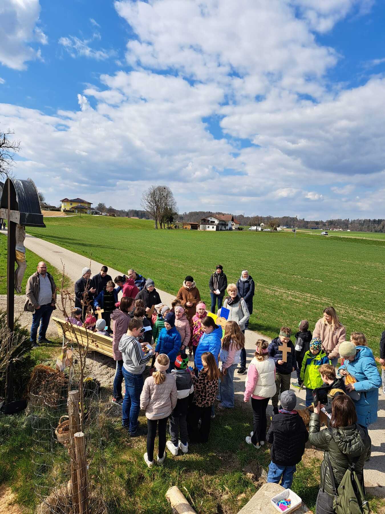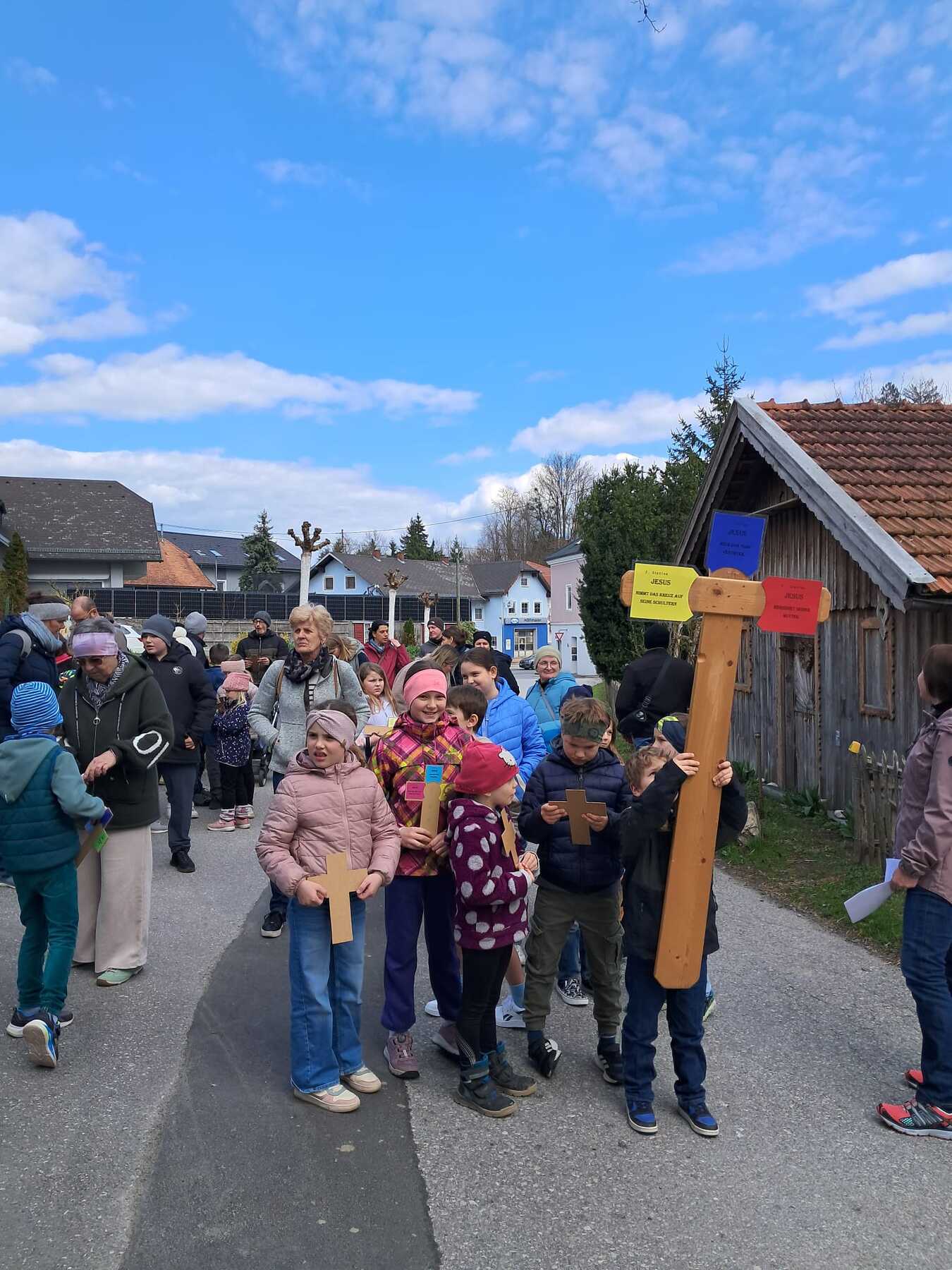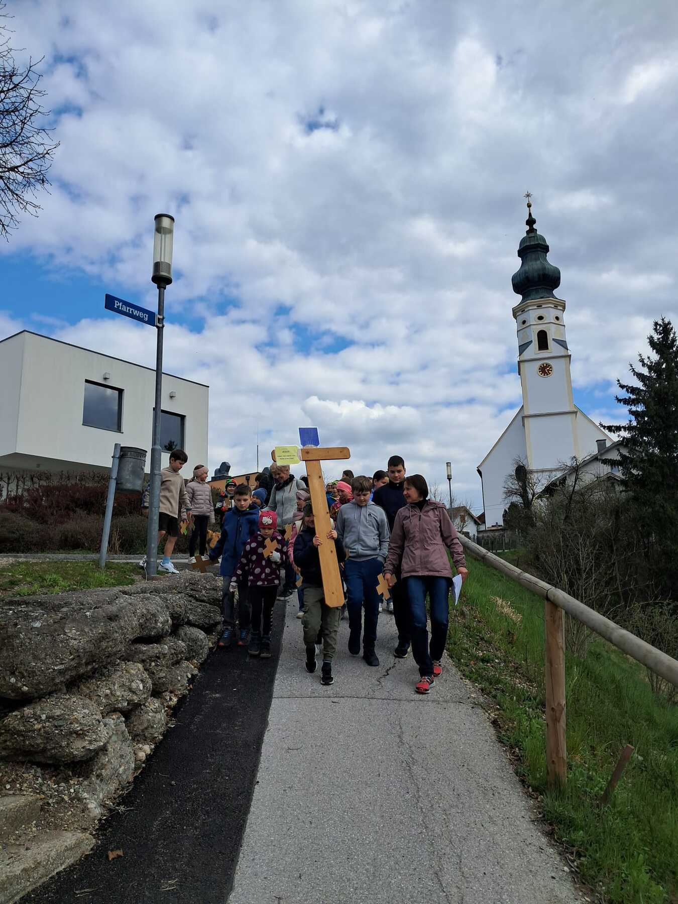 Am Karfreitag waren ca. 40 Kinder mit ihren Eltern und/oder Großeltern beim alljährlichen Kinderkreuzweg dabei.