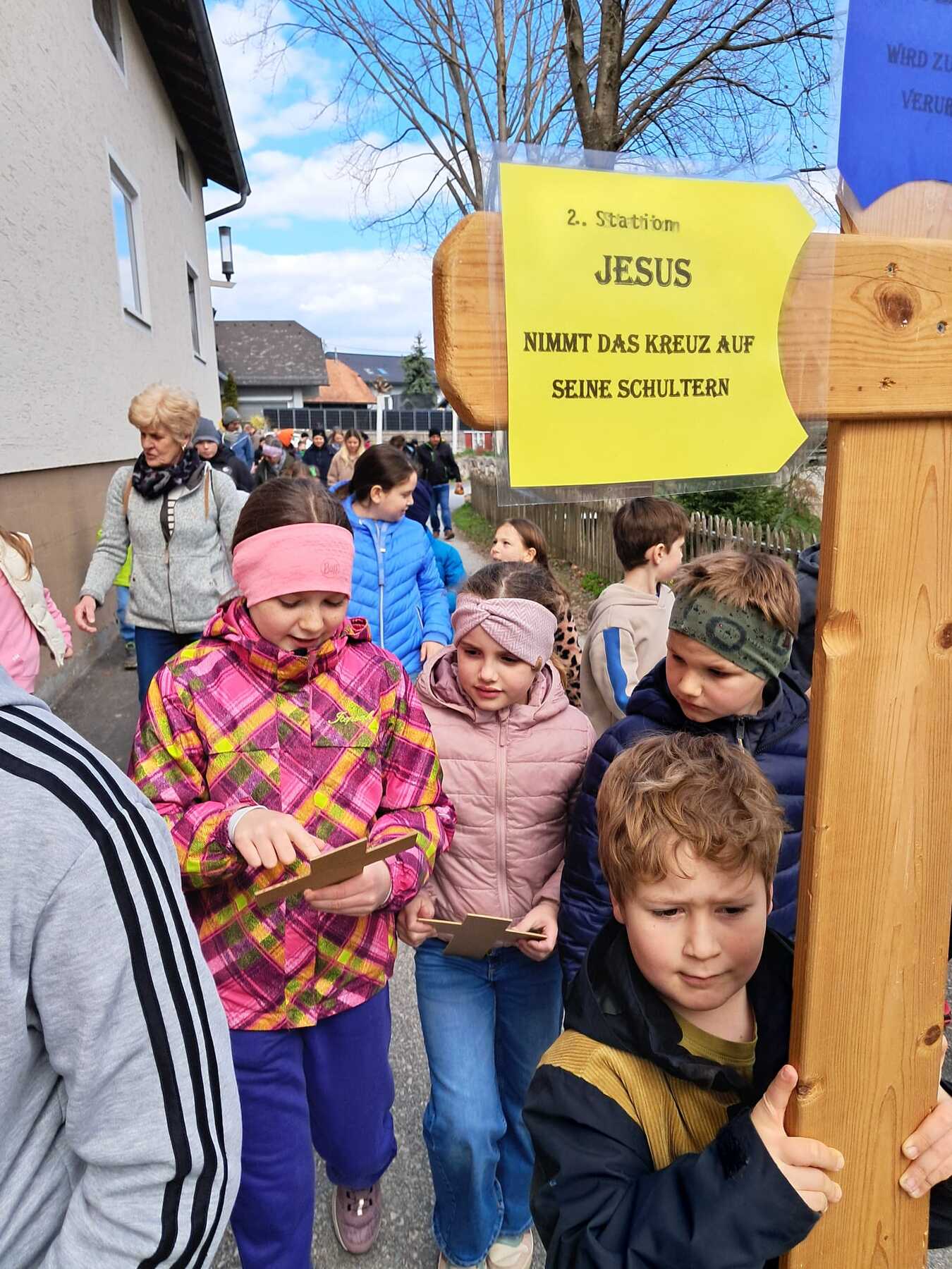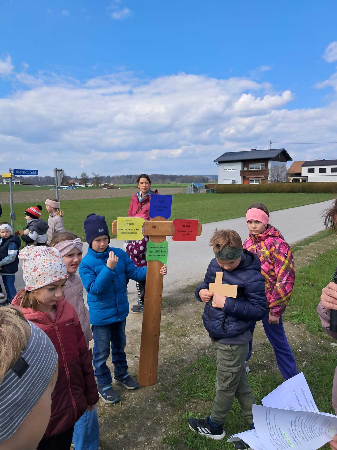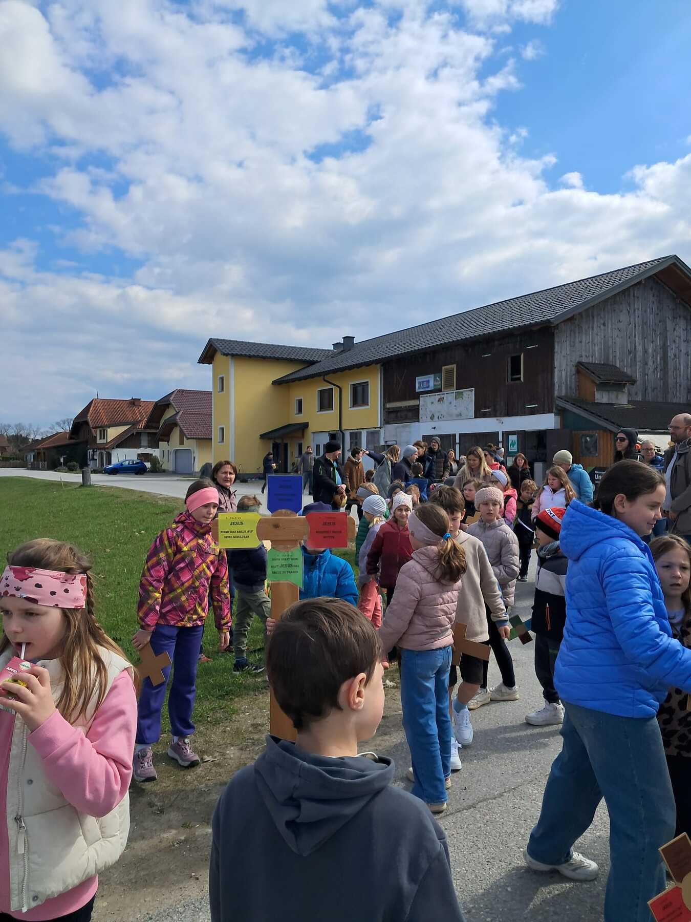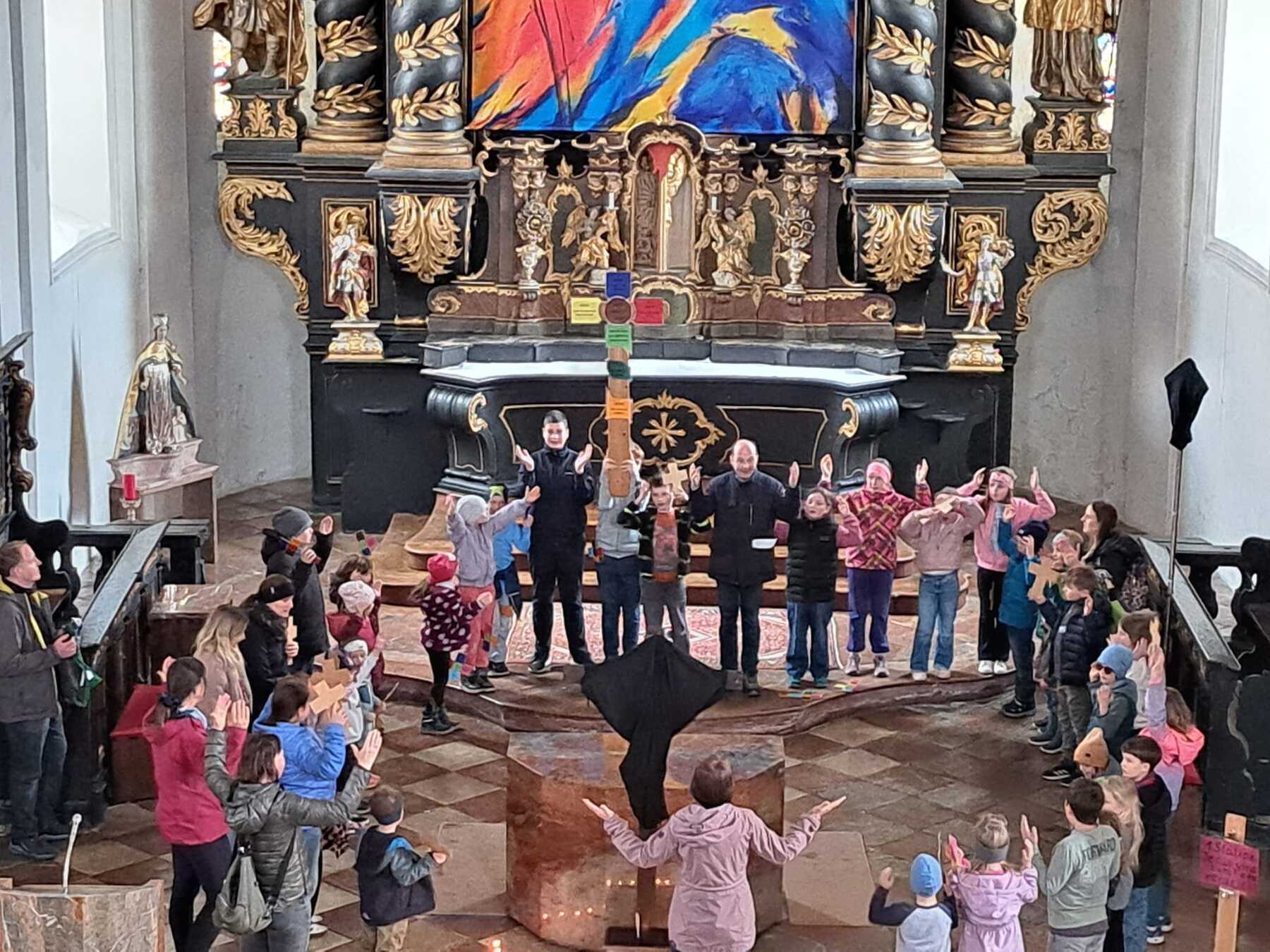 Am Karfreitag waren ca. 40 Kinder mit ihren Eltern und/oder Großeltern beim alljährlichen Kinderkreuzweg dabei.