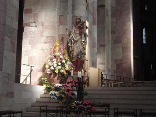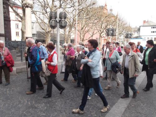Gut gelaunt starteten am Montag 15.4. 2013 um 6.30 Uhr 43 bewährte Wallfahrer, um sich auf die Spuren der Hl. Hildegard von Bingen und des Hl. Rupert von Salzburg zu begeben. Eines der Themen - neben den erwähnten großen Heiligen - waren die imposanten romanischen Dome nördlich der Alpen. Der erste und auch größte wurde am Montag in Speyer besichtigt. Genächtigt wurde in Rüdesheim am Rhein (mit der bekannten Drosselgasse).