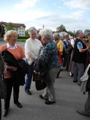 Über Hopfgarten, Wörgl und Kufstein erreichten wir Sachrang. In der Maiandacht gedachten wir dem Tagesheiligen Florian mit seiner Standhaftigkeit im christlichen Glauben und auch Maria, der wir mehrere Lieder widmeten - größtenteils auswendig, weil sich im Bayerischen Gotteslob trotz emsigen Blätterns nur ein einziges uns bekanntes Marienlied finden ließ. Nach dem obligaten Gruppenbild traten wir die Heimreise an, dankten unserem Fahrer Sepp und ließen den schönen Tag mit ein paar Liedern und einem Gebet ausklingen:
