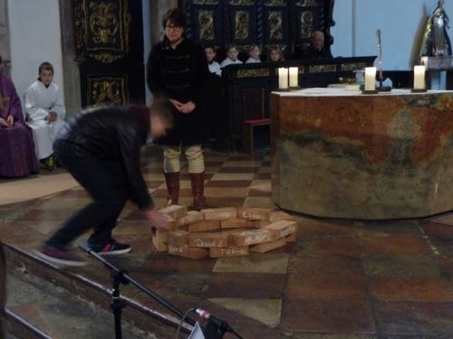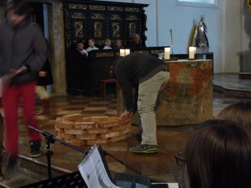 Am 23. März haben sich die 35 Firmkandidaten/Innen von 2014 in der Sonntagsmesse der Pfarrgemeinde "vorgestellt". Als Symbole dienten die gebastelten Windmühlen für den "wind of change", der gerade in der heutigen Zeit wieder stärker wehen sollte sowie das "lebendige Wasser" in der Darstellung eines Brunnens, das unseren Durst nach den nicht-käuflichen Dingen stillen kann.