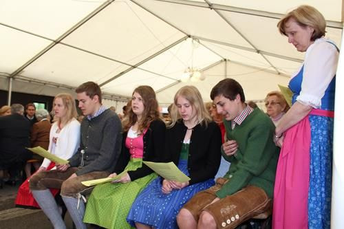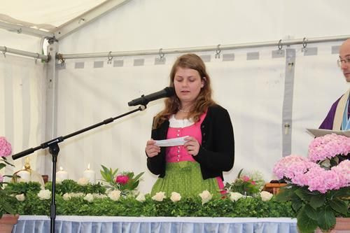Anschließend wurde die feierliche Messe stimmungsvoll im Festzelt von unserem Herrn Pfarrer zelebriert. Begleitet hat uns dazu die Ostermiethinger Tanzlmusi und das „Ernstinger Kapellentrio“. Zu den schönen Klängen der Musizierenden wurde kräftig mitgesungen. Es war eine sehr bewegende Messe.