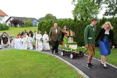 In einem Festzug, angeführt von einer Abordnung der Marktmusikkapelle Ostermiething, begleiteten uns Herr Pfarrer Kanonikus Mag. Markus Menner, die Ehrengäste, die Goldhaubengruppe Ostermiething, die Feuerwehr Ernsting, der Kapellenverein Gumpling, viele Kapellenvereinsmitglieder, Ernstingerinnen und Ernstinger sowie Gäste aus nah und fern zur Kapelle in Ernsting.