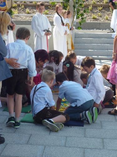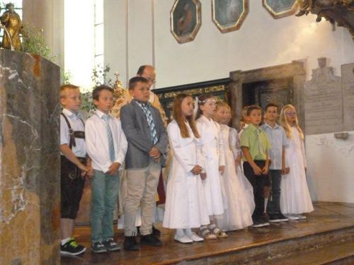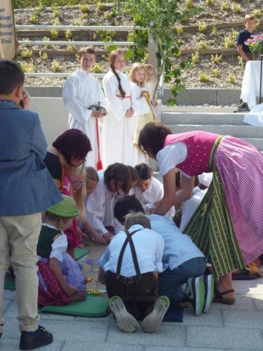 Die Erstkommunionkinder haben dort noch einmal ihr Lied "Wir sind Sonnenkinder" für uns gesungen und dafür viel Applaus bekommen.