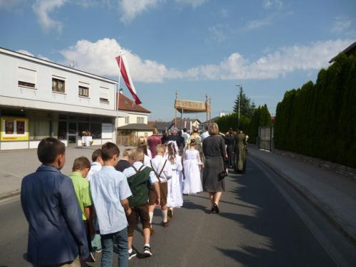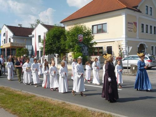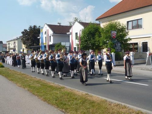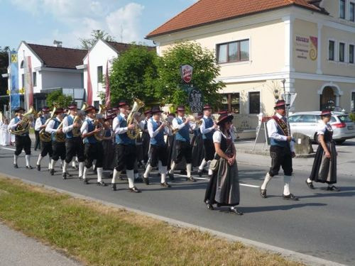 Und genauso ist es: ein Ort, eine Gemeinschaft ist zusammen unterwegs, marschiert öffentlich durch die Straßen, zeigt sich, feiert. Ich glaube, dass sich jeder daran erinnert, wie er schon als Kind durch die Ortschaft mitmarschiert ist - eine sehr emotionale Tradition!
